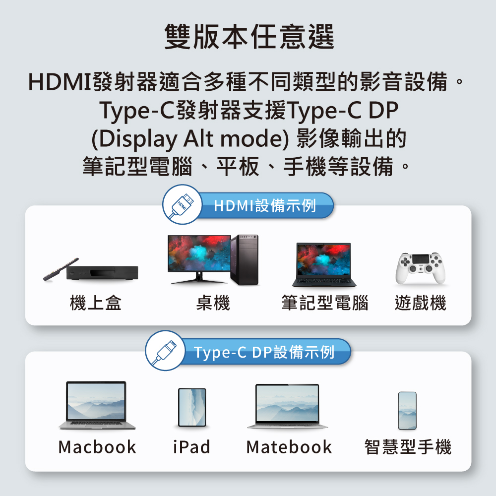 特別注意:"TypeC接口"所持設備需支援特定影音傳輸協議“DisplayPort Alt Mode”才可使用