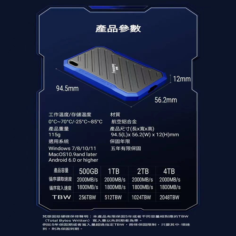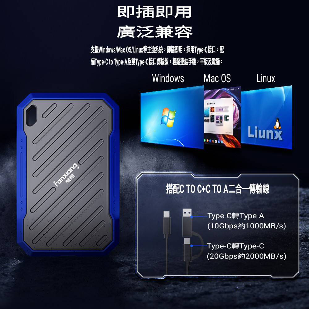★讀取速度2000MB/s寫入速度1800MB/s(20Gbps接口)