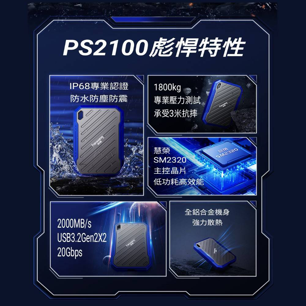 [FANXIANG fàn xiǎng] PS2100 1TB wàijiē shì gùtài yìng dié SSD USB3.2Gen2x2 Type-C dú sù 2000MB/s bǎogù 5 nián 67 / 5,000 [FANXIANG] PS2100 1TB External SSD USB 3.2 Gen 2x2 Type-C 2000MB/s Read Speed 5-Year Warranty