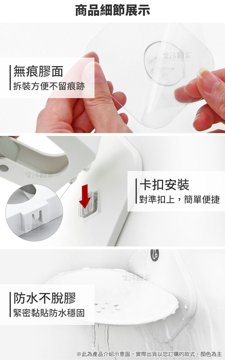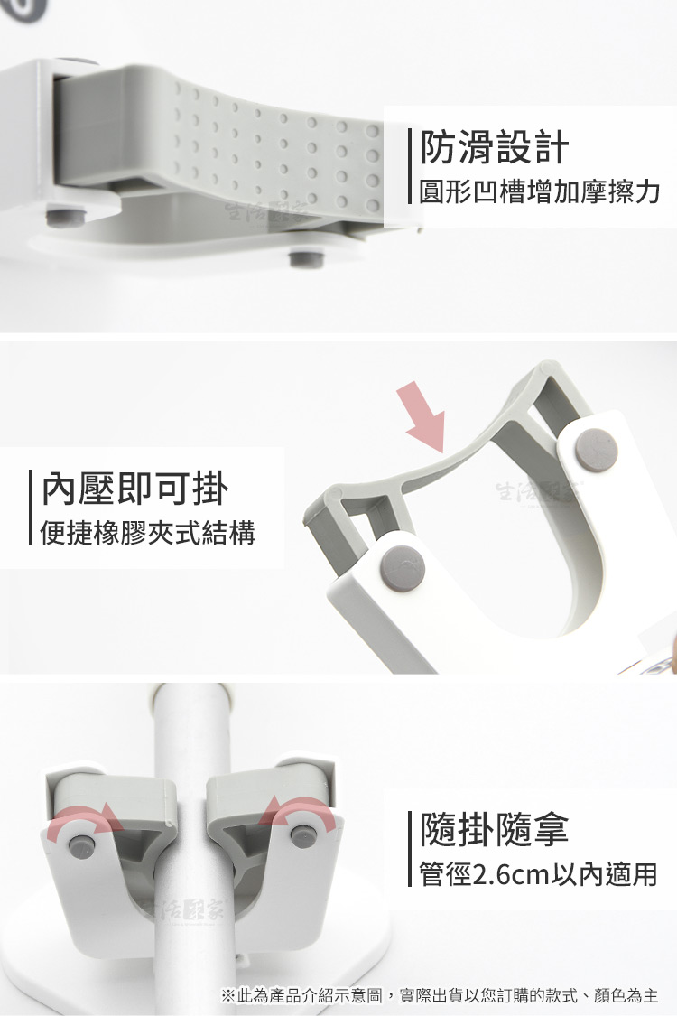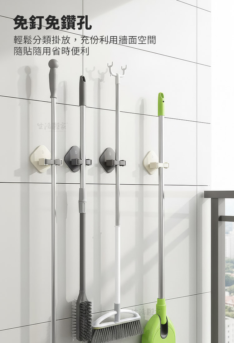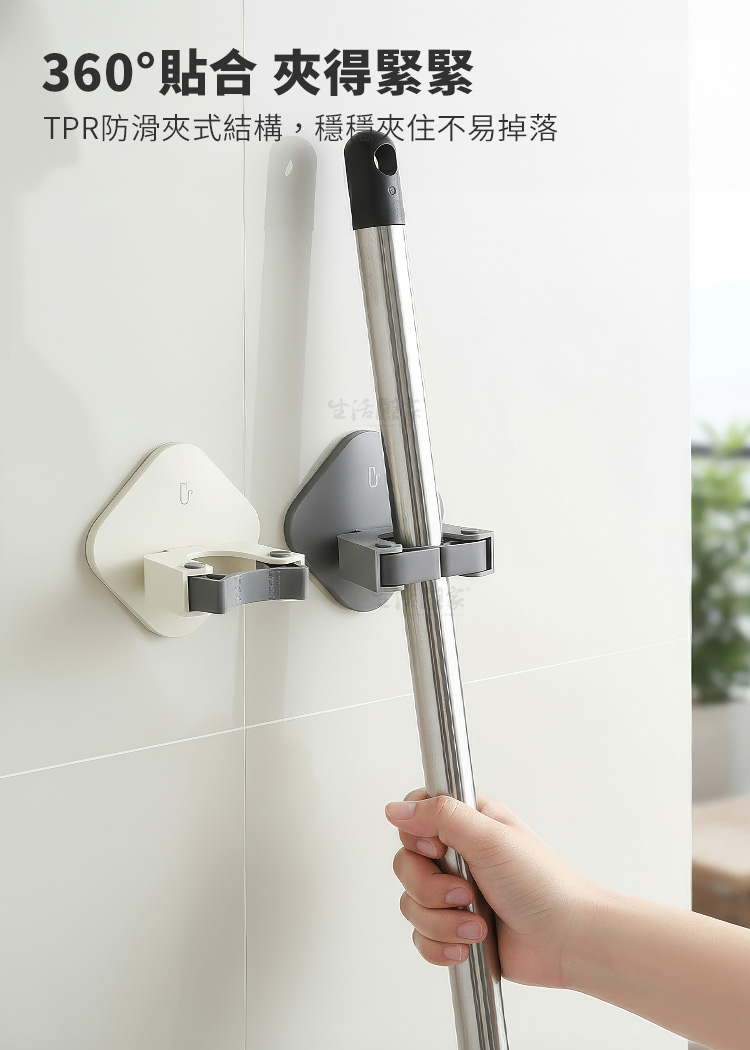 ffcat 強力無痕掃除拖把架,重新定義牆面收納每次掃除完,濕漉漉的拖把只能靠在牆角,不僅容易產生異味,還常滑倒絆到人嗎?🏠 傳統掛勾容易掉落、鑽孔又怕傷了租屋處的牆面。我們深知追求整潔的你,需要一個更聰明、更優雅的解決方案。✅ 免釘安裝,不傷牆面:採用高效無痕背膠,告別電鑽噪音與孔洞,撕下不留殘膠,租屋族也能安心使用。✅ 360° 彈性滾輪夾口:貼心防滑滾輪設計,無論是粗柄掃把還是細桿除塵紙拖把,輕輕一推即可夾緊,單手操作超順手。✅ 強力承重與防水:實測可承受重型清潔工具,且具備優異的防水防潮性能,即使在潮濕的浴室或陽台也不脫落。🚿✅ 通風衛生:讓掃具懸空收納,避免刷頭直接接觸地面積水,保持通風乾爽,避免髒亂保持環境乾淨清爽。👉 使用後你會發現的改變✔️ 拖把不再倒、地板不再濕✔️ 掃除工具集中收納,空間更清爽✔️ 清潔完直接掛回,動線更順✔️ 牆面乾淨,退租也安心小小一個掛架,卻讓清潔習慣整個升級。⚠️安裝前一定要注意這件事請務必安裝於平整、光滑、無粉塵油污的牆面,並於貼上後靜置 12 小時 再使用,才能達到最佳黏貼效果。別讓小細節影響了整家的質感。這款拖把架能完美融入你的居家風格。趁現在整頓你的牆面空間,讓掃除變得更輕鬆!#無痕收納 #拖把架 #浴室收納 #免釘免鑽 #租屋族必備Q1:這款拖把架會不會容易掉?A1:在光滑牆面正確安裝並靜置 12 小時後,於日常使用下穩定固定。Q2:哪些牆面不適合安裝?A2:不建議使用於壁紙、油漆牆、粗糙石材、磨砂牆面等。Q3:拖把太粗可以用嗎?A3:管徑 2.6cm 以內皆可夾持。Q4:可以掛很重的東西嗎?A4:圖片示範為 6KG 測試,但實際承重會依牆面與黏貼狀況而異。Q5:掛久了會不會鬆脫?A5:夾口採用高彈性材質,耐用度高且回彈力強,長期掛載重物依然能保持強勁抓力。注意事項:1.安裝前請務必將牆面擦拭乾淨並保持乾燥,避免灰塵或水氣影響黏著。2.貼上後請用力擠出背膠內的空氣,並靜置12小時後再掛物。3.請勿吊掛超過標示耐重限制之物品,以確保安全性。4.如欲拆除,可使用吹風機熱風軟化背膠,即可輕鬆撕下不傷牆面。5.請勿在拖把架下方放置易碎物品或貴重家具,以防萬一。商品規格:1.尺寸:約寬9.7*深6.2*高9.7cm2.材質:本體-ABS塑膠、貼片-PVC+無痕膠3.重量:約49g/組4.承重:6KG(依牆面狀況為準)5.顏色:奶白、棕、灰,三色隨機出貨6.產地:中國7.商品:免打孔壁掛掃除拖把架*1、貼片*1※商品為人工丈量略有誤差,請以實品為準。※網頁圖片因拍攝關係或螢幕設定不同而會與實際商品略有色差,請以實際收到商品為準。