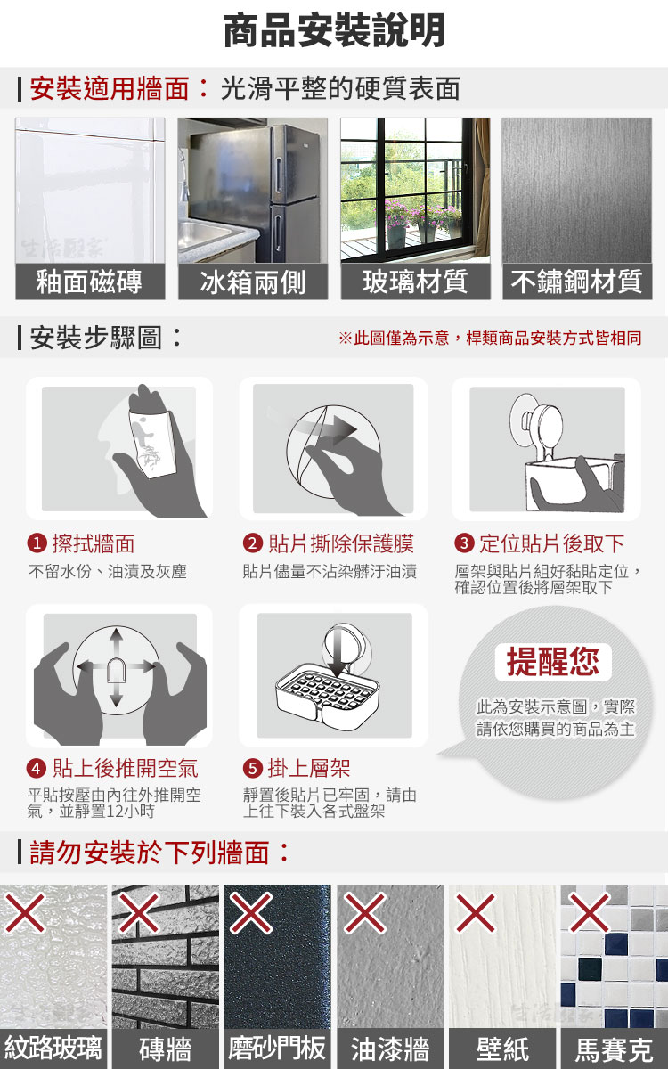 ffcat 免打孔強力無痕貼單桿長毛巾架|浴室廚房牆面收納解決方案毛巾曬不乾?抹布總是亂掛?吸盤常掉、鑽孔怕留痕?這款【ffcat 免打孔強力無痕貼單桿長毛巾架】專為「不想破壞牆面、卻需要穩固收納」的人設計。不用鑽孔、不用鎖螺絲,貼上即可使用,特別適合租屋族與重視牆面美觀的家庭。✨✅ 免釘免鑽,一貼即用:適用於光滑平整的磁磚、玻璃、不鏽鋼表面,避免牆面破壞。✅ 離牆約7cm空間:加深通風距離,毛巾、浴巾不貼牆,減少壁面潮濕感。✅ 活動式掛鉤設計:掛勾可左右滑動,自由調整間距,毛巾、沐浴球、抹布都能分類吊掛。✅ 嚴選輕量化鋁材:採用鋁合金材質,不僅防潮、不生鏽,更具備高強度支撐力,輕盈卻無比堅固。✅ 強大承重力:經實測可穩定承重 6kg,無論是厚重浴巾還是瓶裝備品都能安心懸掛。✅ 極致空間利用:修長設計,專為廚房、浴室甚至洗衣機旁的窄縫空間優化,不佔坪數卻能創造倍增空間。🌈 使用後你會發現…🛁 浴室不再凌亂🍽 廚房抹布有固定位置🧺 洗衣機側邊也能利用🚪 窄縫空間也能安裝當收納不再需要鑽牆,生活的彈性就回來了。搬家可拆卸、不留明顯痕跡,牆面保持完整,美觀與實用兼顧。👉 現在就升級您的居家空間!別讓凌亂影響了您的心情。生活采家 ffcat 免打孔掛鉤桿 提供最簡單、最無損的收納升級方案。無論是租屋自住還是舊屋翻新,這都是最聰明的投資。#生活采家 #免打孔收納 #廚房美學 #浴室改造 #租屋必備📣 FAQ(常見問答)Q1:這款毛巾架真的不用鑽孔嗎?A1:是的,採用無痕貼片設計,免釘免鑽即可安裝於光滑硬質表面。Q2:可以安裝在哪些牆面?A2:適用光滑磁磚、玻璃、不鏽鋼等光滑平整表面,不建議安裝於壁紙、粗糙水泥或粉刷牆。Q3:掛勾可以調整位置嗎?A3:可以,掛勾可左右滑動,自由調整間距。Q4:拆除會留殘膠嗎?A4:使用吹風機對準背膠加熱軟化,即可輕鬆撕除不留痕跡。Q5:可以掛重物嗎?A5:承重測試6KG,日常毛巾與小物使用無虞,請勿長期超重使用。Q6:安裝後多久可以開始掛東西?A5:建議安裝完畢並排擠出背膠空氣後,靜置 24 小時讓黏性達到最佳狀態再掛物。注意事項:1.安裝前請確保牆面乾燥、無油汙、無灰塵,以確保背膠效能。2.避開接縫, 黏貼時應避開瓷磚間的接縫處,確保背膠完全貼合。3.承重限制, 建議安全承重範圍在 6kg 以內,請勿懸掛貴重、易碎或超重物品。4.環境溫度, 建議在 5°C 至 45°C 的環境下使用,避免陽光長期直射。5.氣泡排除, 黏貼背膠時請由內向外用力按壓,務必將空氣完全排出。