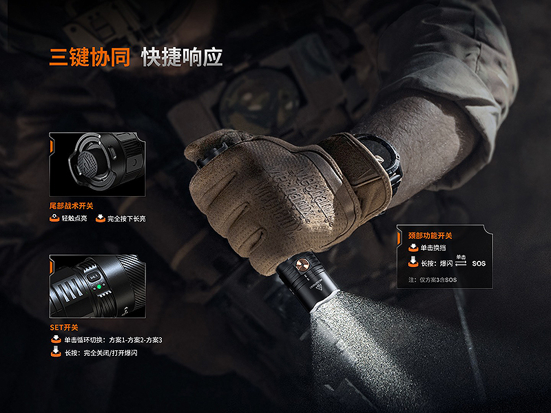 (以下為原廠提供參考數據,非絕對)品名:FENIX PD36R ACE 三合一戰術直筒手電型號:#PD36R ACE