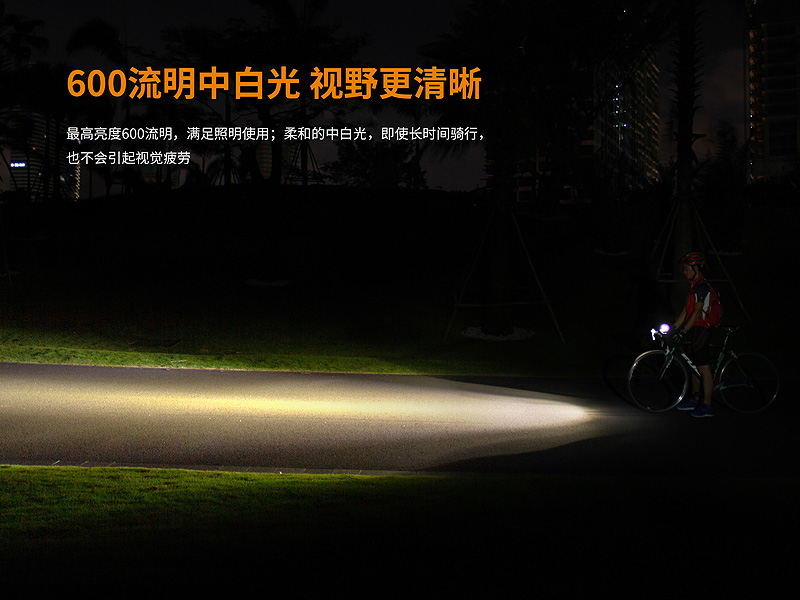 (以下為原廠提供參考數據,非絕對)品名:FENIX BC25R 輕量化自行車燈型號:#BC25R◎截止線光斑,防眩目,城市騎行更安全◎使用Cree XP-G3中白光,最高亮度600流明◎內置2600mAh鋰離子電池◎採用Micro USB 充電◎±10%:113毫米 (長) x 32毫米(寬) x31毫米(高)◎±10%:淨重155克(包含支架+電池)◎電量指示和低電警示功能◎一鍵操控◎支架快拆,方便使用◎可手持使用◎全金屬散熱稽,性能可靠