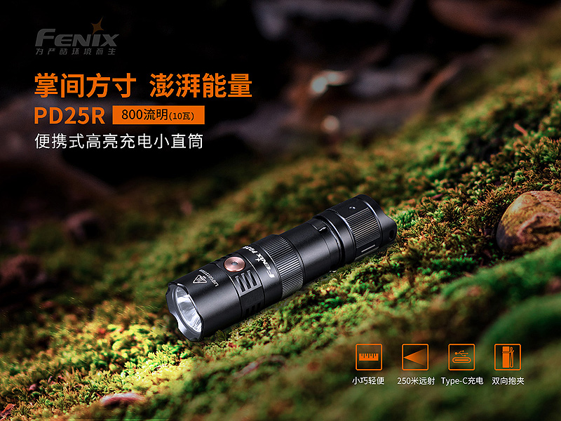 (以下為原廠提供參考數據,非絕對)品名:FENIX PD25R 便攜高亮充電小直筒型號:#PD25R