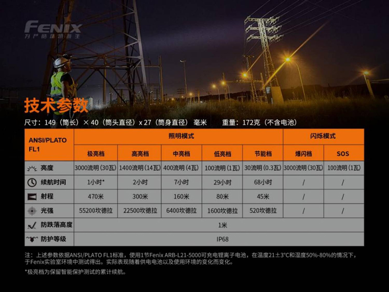 (以下為原廠提供參考數據,非絕對)品名:FENIX C7 高性能直充作業手電筒型號:#C7