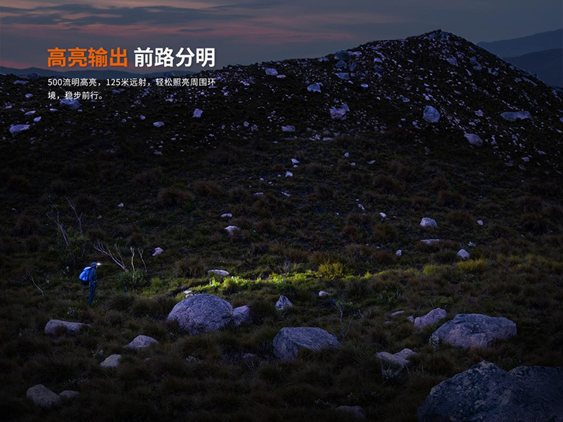 ◎最高亮度500流明,最遠射程125米◎使用1*Luminus SST20白光、1*2835紅光LED,壽命50000小時◎採用1節950mAh的內置電池供電◎具有紅、白雙光源,滿足多種照明需求◎雙按鍵開關設計,獨立操控模式和檔位元,操作簡單快捷◎電子鎖定/解鎖功能,防止誤觸點亮◎支持Type-C直充◎鋁合金材質前殼,堅固耐磨,散熱能力強◎具備IP66級防護及1.5米抗跌落能力◎頭燈尺寸(±10%):56毫米(長)×40毫米(寬)×31.9毫米(高)◎重量(±10%):72.5克 (含電池、頭燈帶)
