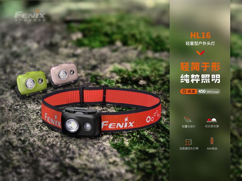 (以上與下為原廠提供參考數據,可能有誤差值,非絕對)品名:FENIX HL16 2023輕量型戶外頭燈型號:#HL16 2023 曜石黑/#HL16 2023 果綠色/#HL16 2023 桃粉色