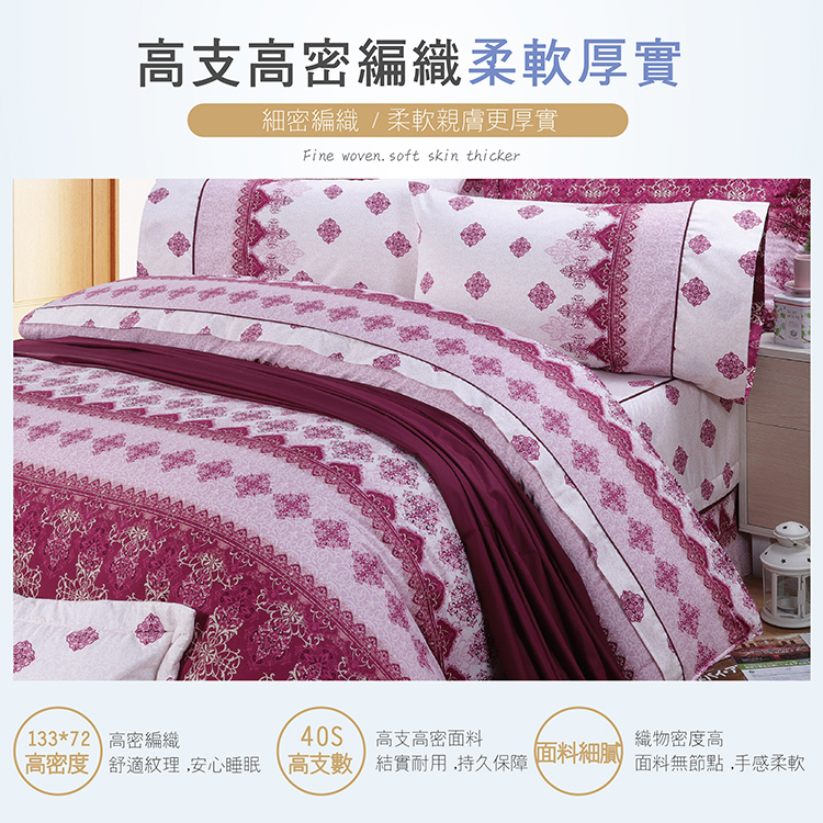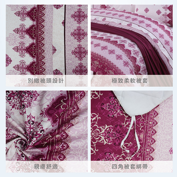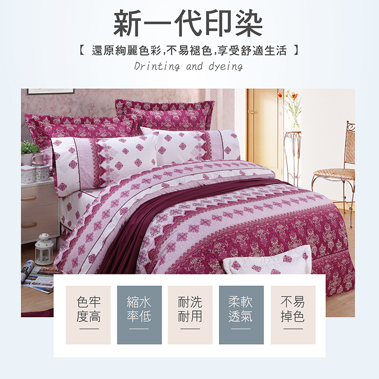 精梳棉雙人七件式床罩組-塞納風情-紅