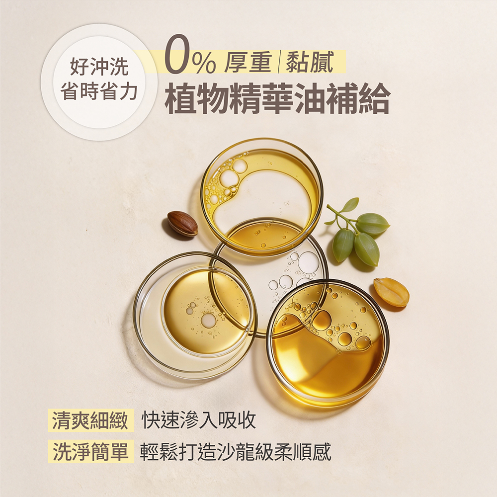 依個人頭髮狀態需要,建議可每天「洗髮+潤髮」的方式來保養。若是頭髮受損或需要深層保養時,建議厚塗再以浴帽包裹靜置15分鐘之後洗去,即可達到深層護理效果!