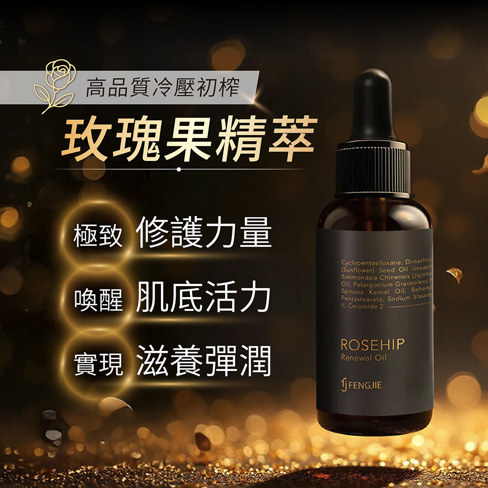 【FJ豐傑生醫】玫瑰果全效撫紋修護油-30ml/瓶(加強皮脂防禦力)