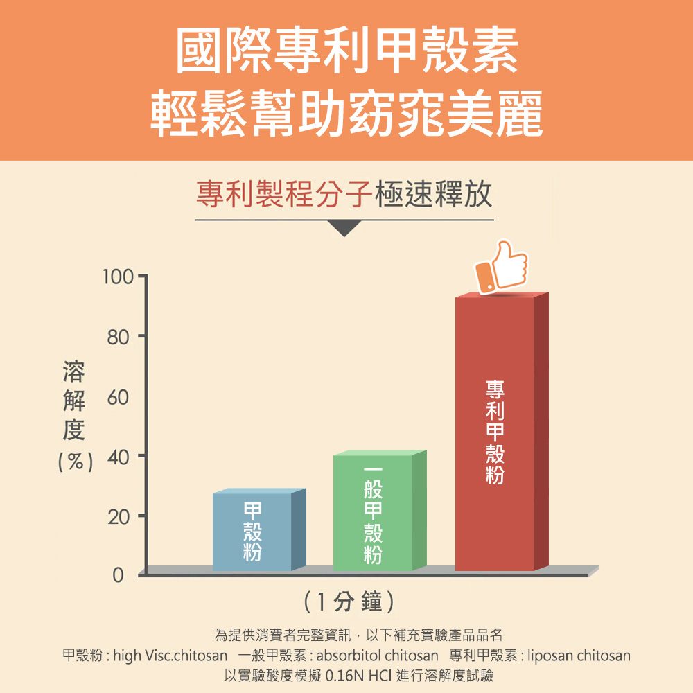 甲殼素,是自然界節肢動物的外骨骼,也是多醣分子的膳食纖維種類,多用於醫學等領域。對於愛吃大餐、高熱量密度食物的人,攝取甲殼素可以促進新陳代謝,幫助窈窕美麗。