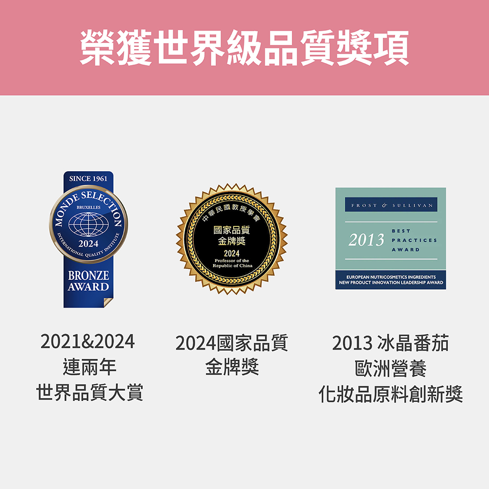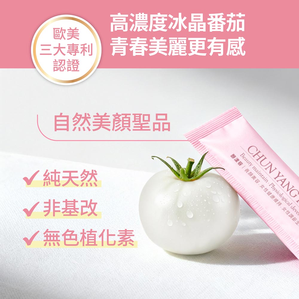 Q1:醇漾容有無雌激素?豐傑的產品皆不含西藥、雌激素,且經過嚴格品質控管,並通過SGS嚴謹把關,請各位可以放心使用!Q2:醇漾容適合哪些人食用?配方皆以成人健康調製,適合各年齡層、素食者也能安心食用,6歲以下幼兒不建議食用。請注意對穀胱甘肽過敏者、孕婦、哺乳期間請選擇【安馨版】。Q3:醇漾容怎麼吃?什麼時間吃?早起空腹食用最佳。建議每天1~3包,1包安心保養,2-3包速效調理,40度以下的開水或飲品沖泡均勻攪拌後飲用。小包裝設計,讓您攜帶方便,外出時可以直接將醇漾容倒入口中搭配水食用喔!Q4:醇漾容可以跟其他產品同時食用嗎?任何產品都不建議同時食用喔!因為怕成分會互相牴觸,建議間隔30分鐘再食用會比較好喔!Q5:請問醇漾容喝起來是什麼味道?充滿淡淡的蔓越莓香氣,好喝到還想續杯,帶有一點點酸甜感,加入冰水、果汁、蜂蜜水飲用更好喝!Q6:請問可以加進飲料食用嗎?可以的!但碳酸飲料及奶製品不建議喔!Q7:請問醇漾容養顏美容的成分是什麼呢?特別添加多種美顏成分,包含專利冰晶番茄、專利穀胱甘肽、白藜蘆醇、琉璃苣油以及專利葡萄籽萃取,還有維他命C、維他命E營養補給,更是養顏美容青春美麗的關鍵!Q8:請問你們的鐵是哪一種呢?我們特別挑選的鐵質為焦磷酸鐵。不僅是鐵含量極高,更沒有鐵腥味的鐵劑,不會有難以入口的問題。Q9:請問抗氧化的成分有哪些?有維生素C、E,也添加了專利穀胱甘肽及專利葡萄籽,更能幫助加倍!Q10:請問女性健康維持的成分是什麼呢?蔓越莓富含花青素、前花青素外,還有專利葡萄籽的原花青素特別通過專利技術萃取,幫助女性健康維持喔!---------------------------------------------------------------【使用方式】每日1-3包;搭配40℃以下開水或飲品、果汁沖泡飲用增添風味。【產品功效】養顏美容、具抗氧化作用、私密呵護、紅潤氣色、營養補給、調節女性生理機能、擁有7項歐美專利榮獲2021歐洲品質評鑑大賞、14項歐美日專利配方、特選專利以色列冰晶番茄、幫助調整體質、調節生理機能【產品特點】孕婦可選擇【安馨版】不含專利穀胱甘肽、琉璃苣油✔ 榮獲2024歐洲品質評鑑大賞✔ 每天1包 空腹食用較佳✔ 14項歐美日專利配方✔ 特選專利以色列冰晶番茄✔ 美國FDA-GRAS成分認證 ✔ 嚴選日本大廠KOHJIN出品 穀胱甘肽✔ 礦物質 鐵,幫助養顏美容✔ 維生素C 抗氧化、促進鐵的吸收✔ 維生素E 有助於減少自由基的產生✔ 調整體質、調節生理機能✔ 女性健康維持【主要成分】葡萄糖、蔓越莓果汁粉、麥芽糊精、綜合果汁粉、維生素C、檸檬酸、香料粉、專利葡萄籽萃取、果寡糖、二氧化矽、專利穀胱甘肽、維生素E、蔓越莓萃取、洋菜粉(寒天)、甜菜根粉、琉璃苣油粉、紅石榴萃取物、黑木耳萃取粉、紅酒萃取(含白藜蘆醇)、焦磷酸鐵(鐵)、專利冰晶番茄、SOD綜合蔬果酵素粉。【商品規格】容量規格: 4g/包、 30包/盒保存期限: 2年貨源: 公司貨產地: MIT劑型:粉末【注意事項】1. 孕婦、哺乳及嬰幼兒請勿食用。2.對穀胱甘肽過敏者請勿食用。2.對穀胱甘肽過敏者請勿食用。