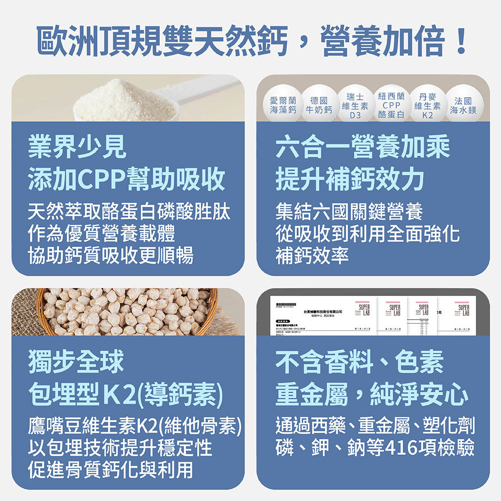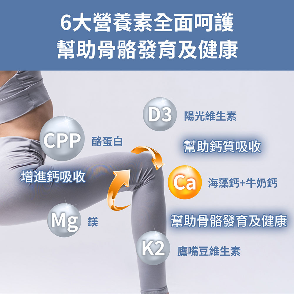 ➤ 精選6合1營養,提升補鈣效力