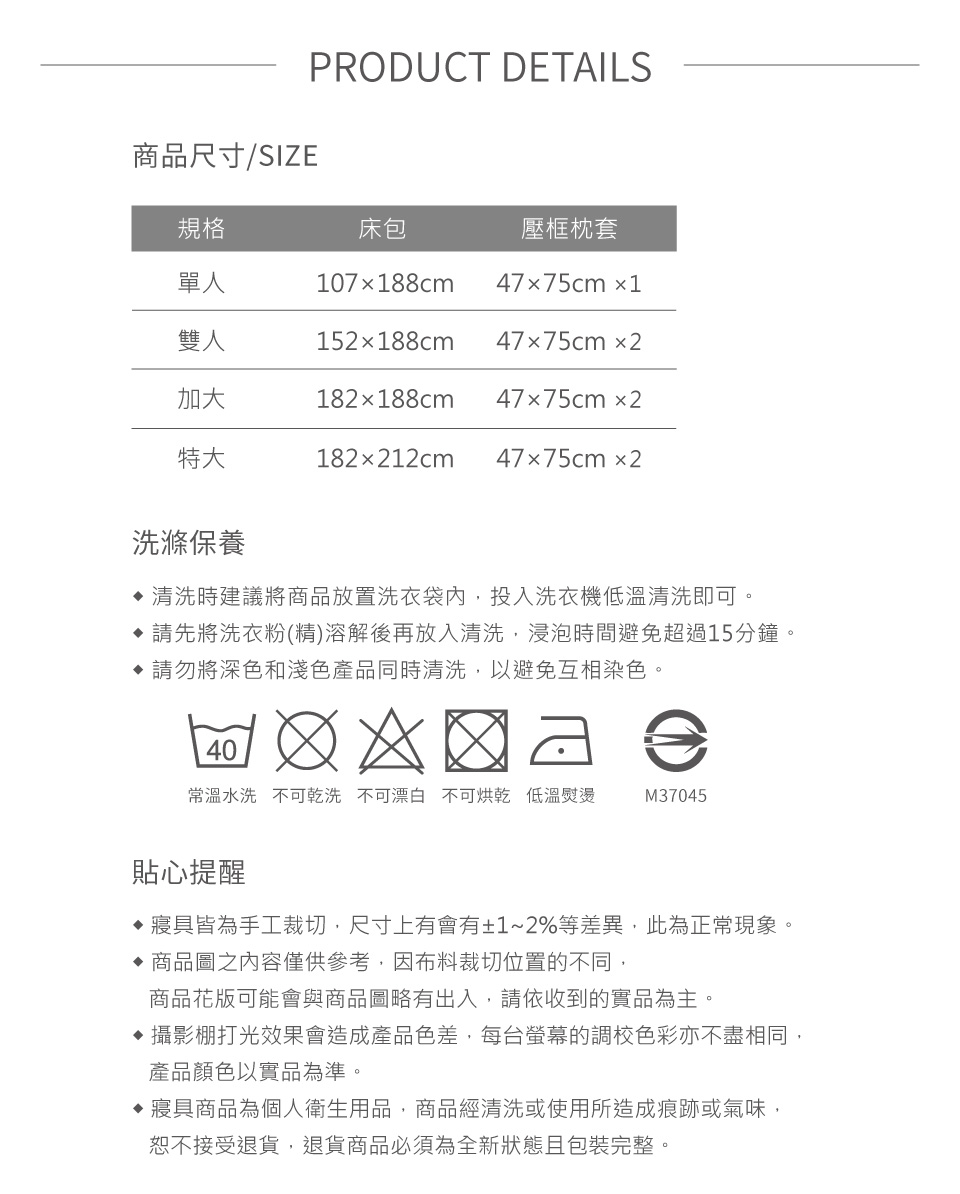 ◆商品組合:全包覆式薄床包x1+壓框薄枕套x1;共2件∕組