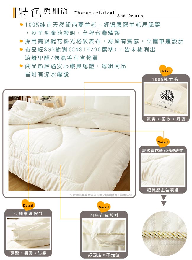 .材質: 表布:100%緹花磨毛布(100%聚酯纖維);填充物:100%純正羊毛