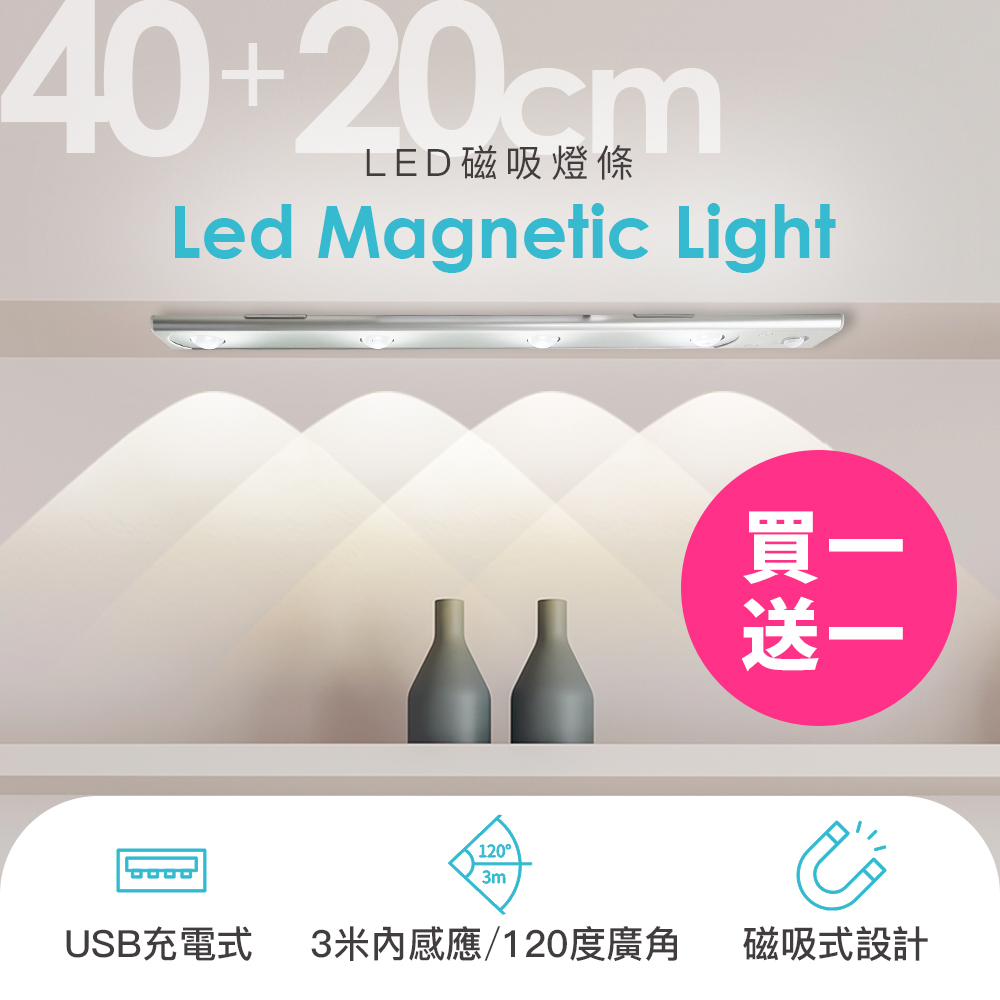 20cm + 40cm LED Magnetic Light Bar (Buy 1 Get 1 Free)