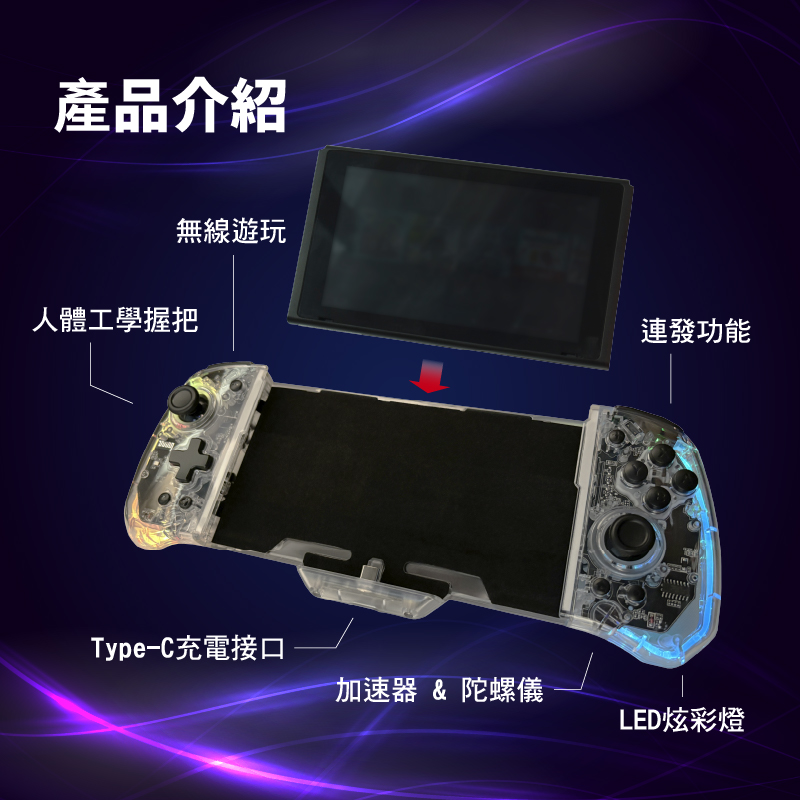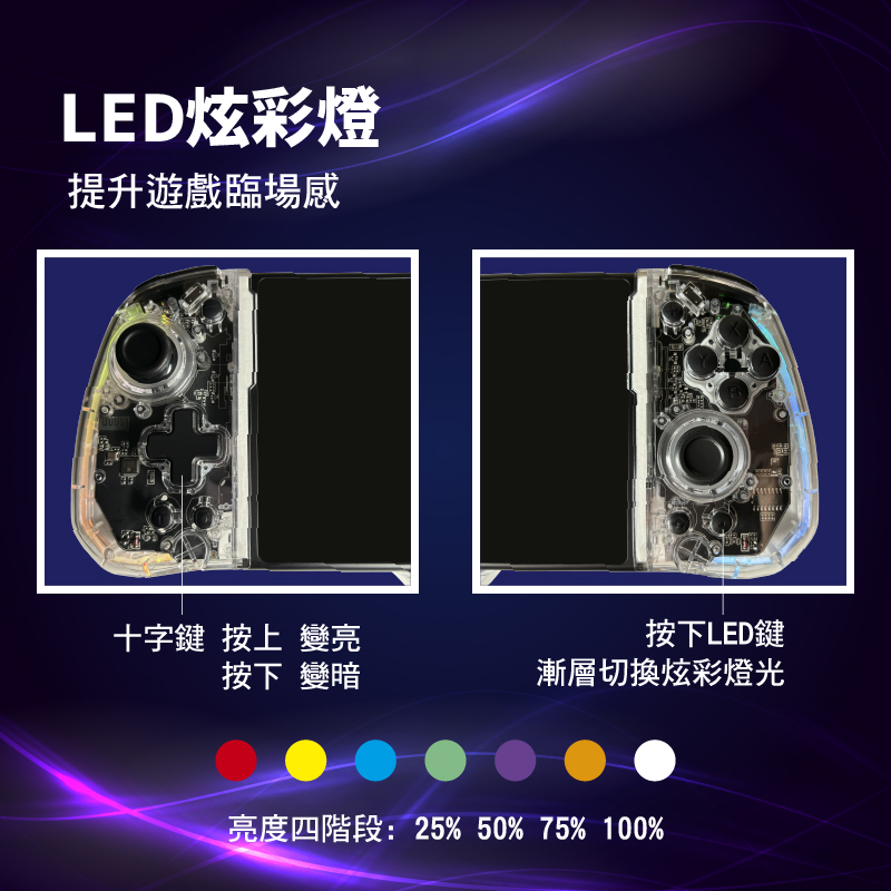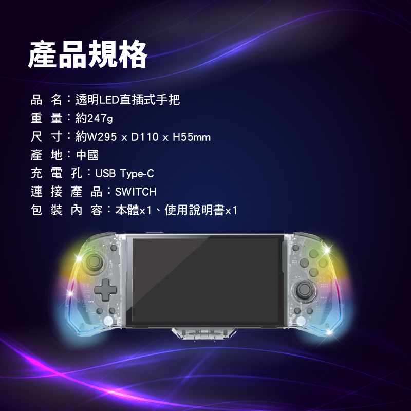 ✨ Switch 透明 LED 直插式手把|炫彩操控