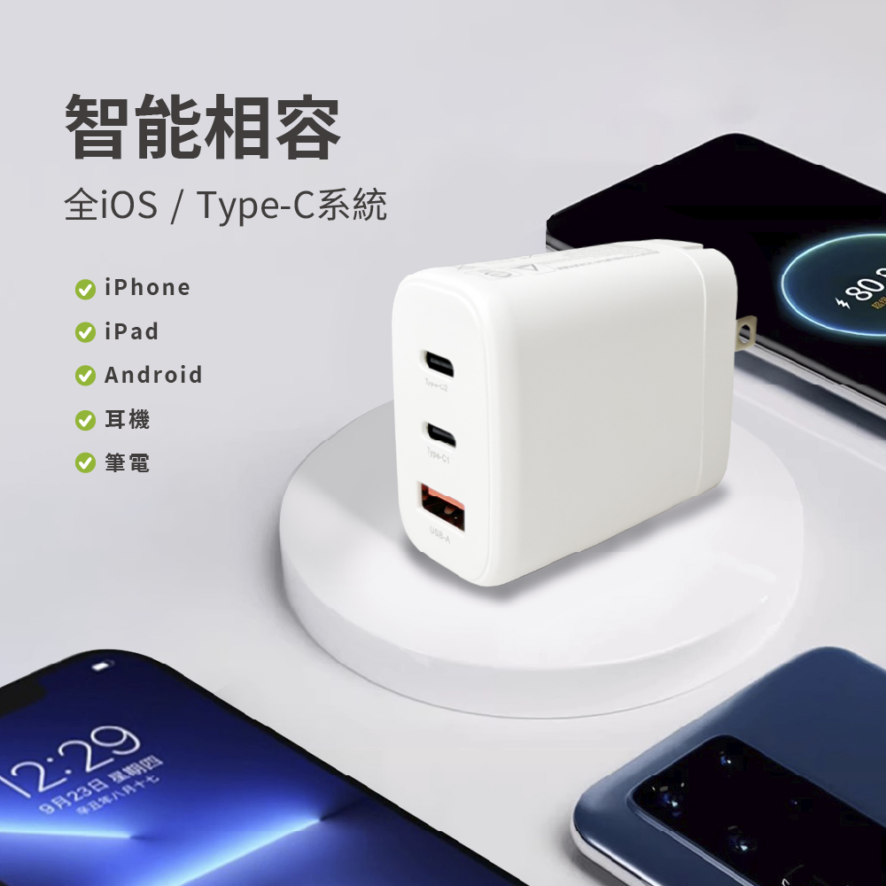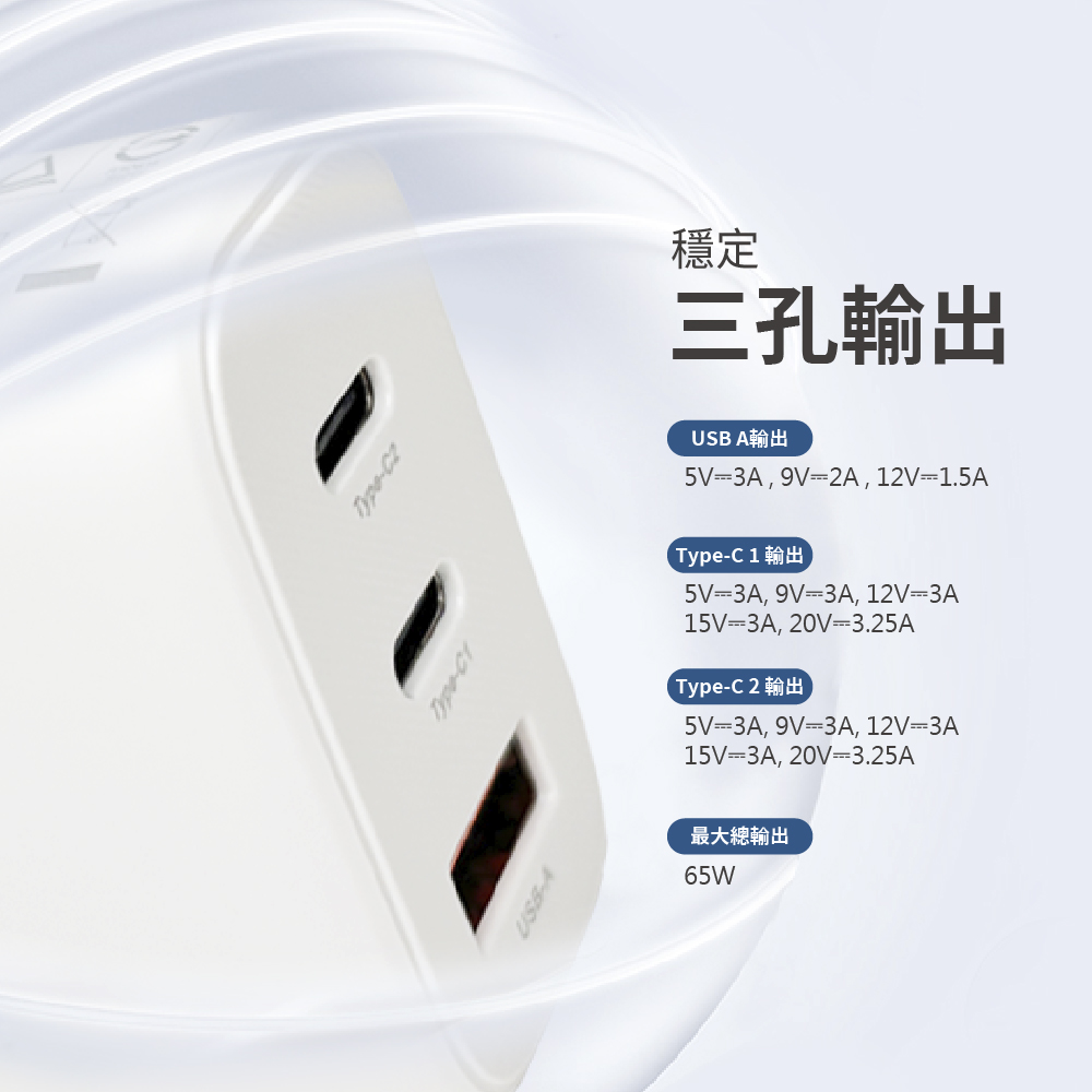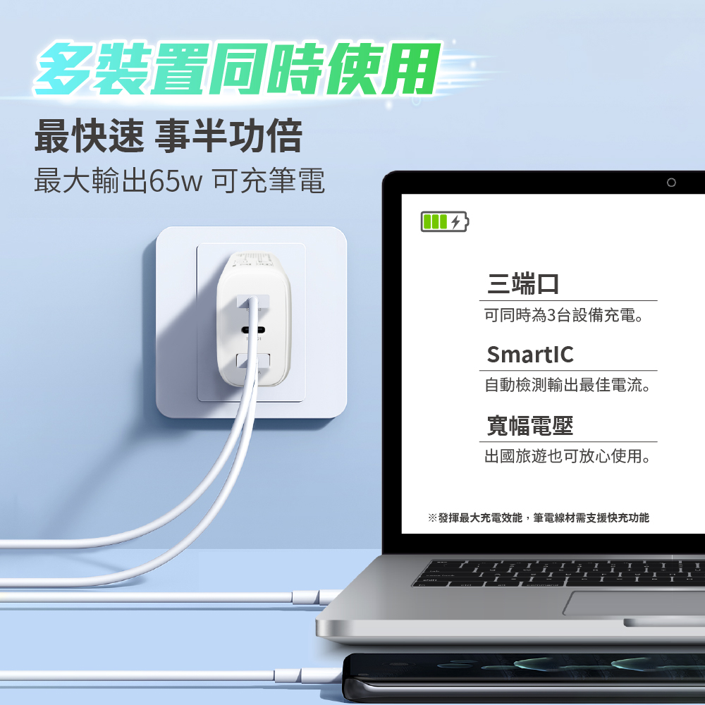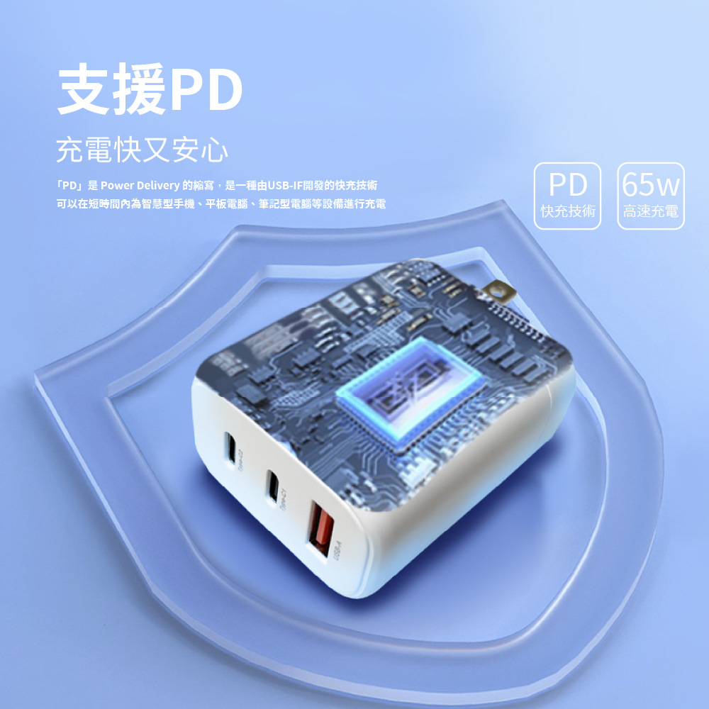 ✨ PD65W 氮化鎵 GaN 3口電源供應器|高效快充