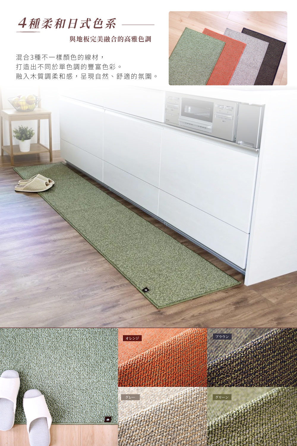 【PLYS】Japan-Made Kitchen Runner Mat 45×180cm – Blue Brown (Absorbent Non-Slip Design / 6mm Thick / Machine-Washable)
