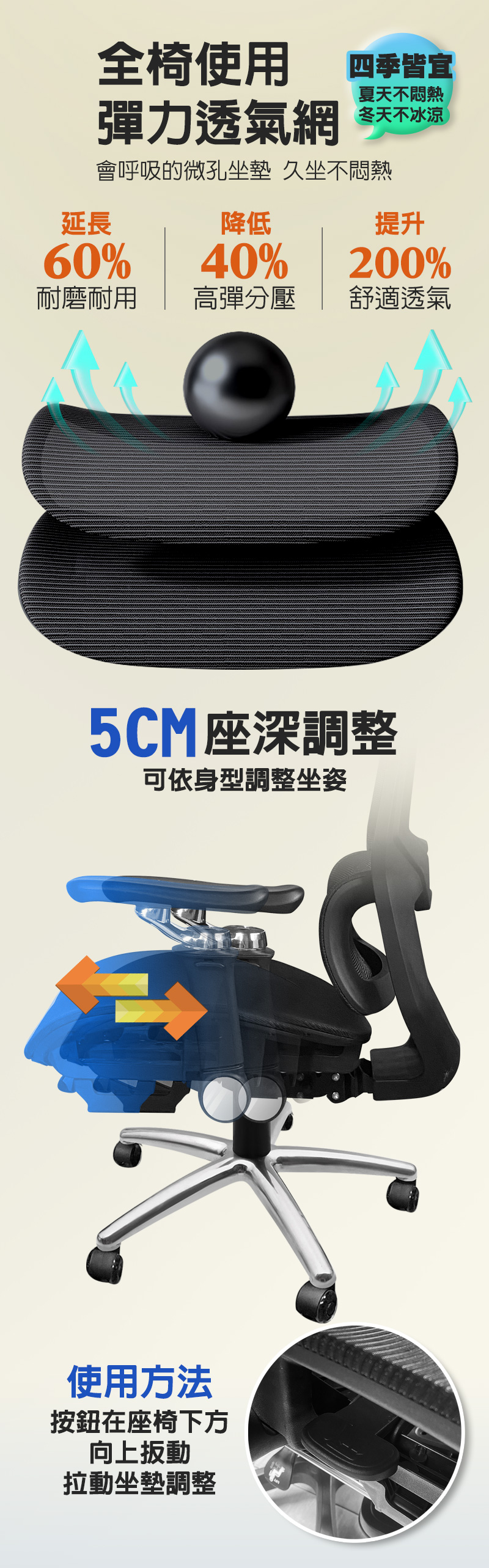材質:座椅-彈性透氣網布、框架-塑膠、 腳架-70公分鋁合金