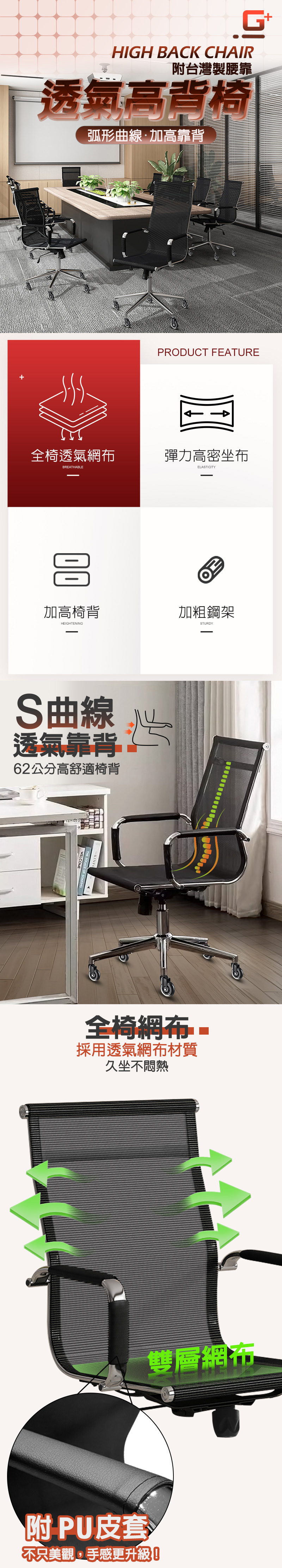 G+ Home No-Assembly High-Back Breathable Mesh Executive Chair with Taiwan-Made Ergonomic Lumbar Support – Silver Base