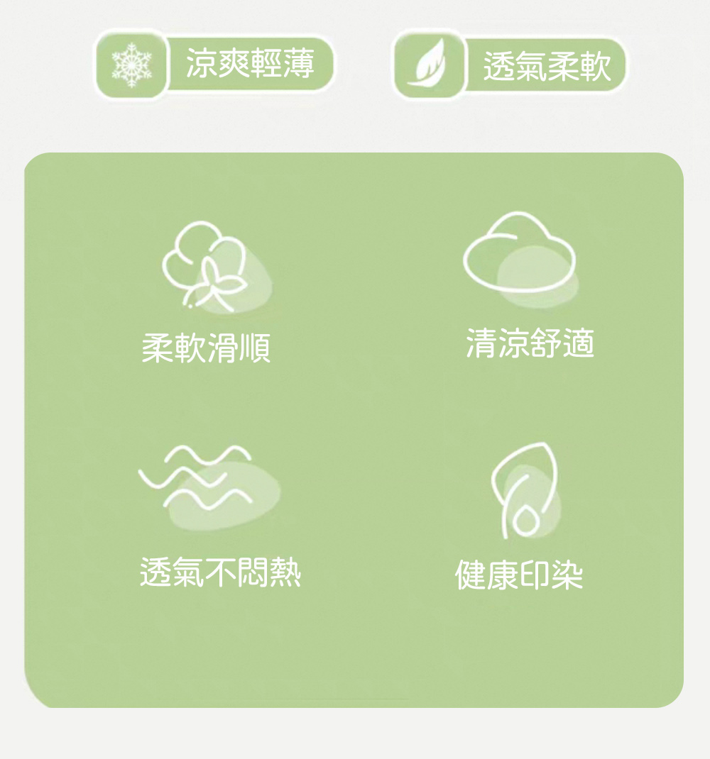 → 大豆蛋白纖維蓬鬆親膚,涼感絲面料柔順不刺癢,適合對布料觸感挑剔的人。