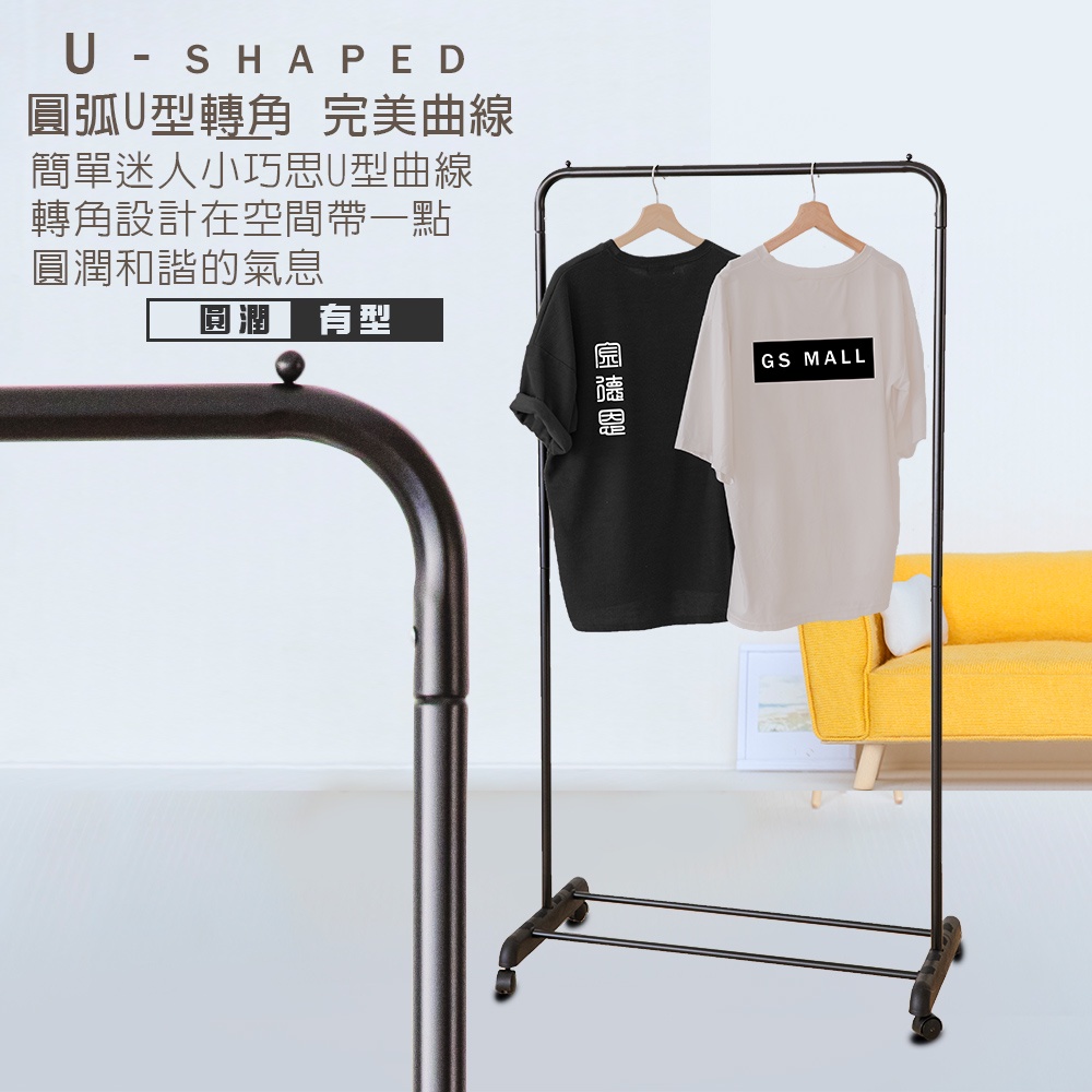 GS MALL 台灣製造 U型收納吊掛衣架 附滑輪 衣帽架 毛巾架 晾曬架 吊衣架 曬衣架 落地架 U型衣架 吊掛架
