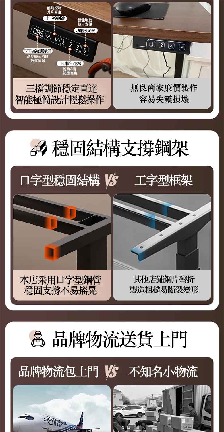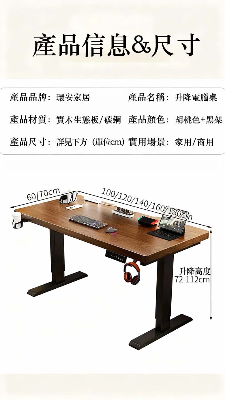 【同級頂配護脊桌|實木電腦升降桌】同級首選健康標杆|護脊升降 + 實木耐用 + 隱藏收納雙頂配不只升降、更護脊省空間,這款實木升降桌直接成為同級健康與收納的雙標杆:🔝 電動無極升降(站坐切換護頸腰)🪵 進口 E0 級實木面板(環保無味耐用)🗄 隱藏分區收納(桌面無雜亂)🎯 4 檔記憶高度(一鍵切換適配身高)🛡 遇阻即停防夾(升降安全無隱患)🔝 電動無極升降|站坐切換遠離久坐勞損電動驅動覆蓋 72-120cm 高度範圍,隨時切換坐姿 / 站姿辦公,緩解長期久坐帶來的頸椎僵硬、腰椎酸脹;長期使用能改善辦公姿勢,減少腰肌勞損風險,適合程序員、設計師等長坐人群。🪵 進口 E0 級實木面板|環保耐用無負擔採用進口優質實木,環保等級達 E0 標準,拆箱無甲醛異味,孕嬰家庭也能放心用;表面做耐磨防刮處理,筆跡、咖啡漬一擦即淨,壽命是普通纖維板桌的 5 倍以上。🗄 隱藏分區收納|桌面清爽專注力提升桌下設隱藏抽屜 + 側邊線槽,鍵盤、筆記本配件可收進抽屜,電腦線材隱藏走線;桌面無雜亂線材、零散物品干擾,辦公時專注力更集中,效率直接拉滿。🎯 4 檔記憶高度|全家共用一鍵切換支持存儲 4 個常用高度,自己的坐姿 / 站姿高度、家人的學習高度都能一鍵調出,不用反覆手動調節;不管是 155cm 的女生還是 185cm 的男生,都能快速找到舒適高度。🛡 遇阻即停防夾|居家辦公更安心升降過程中碰到手指、書本等物品會立即停機,搭配桌邊軟膠緩衝條,避免夾傷風險;家中有兒童、寵物時也能放心使用,升降安全無後顧之憂。🌟 為什麼幾乎所有長坐人群都選我們?✔ 護脊最貼心:電動升降站坐切換,遠離久坐勞損✔ 材質最安全:E0 級實木無異味,孕嬰家庭也能用✔ 桌面最清爽:隱藏收納,雜物線材全隱形✔ 調節最便捷:4 檔記憶高度,一鍵切換不費力✔ 使用最安心:遇阻即停防夾,升降無安全隱患