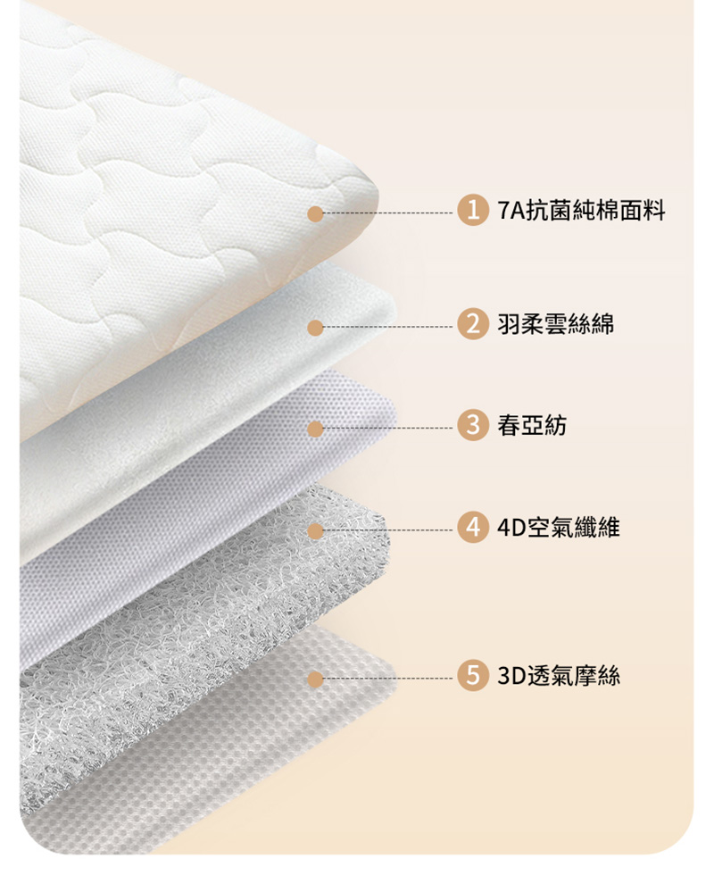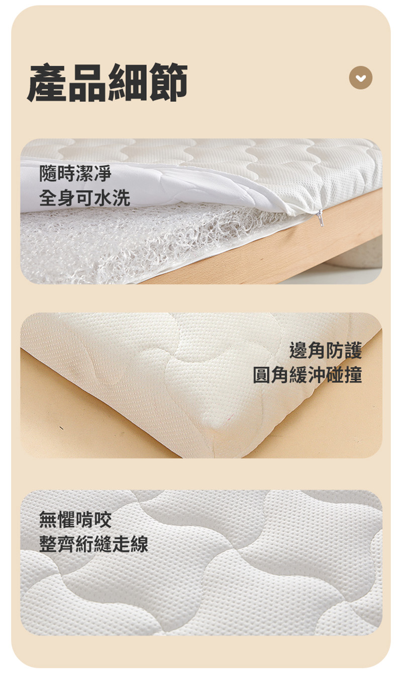 材質:布套100%聚酯纖維、內芯100%聚酯纖維尺寸:120x60(cm)/120x65(cm)/120x70(cm)/130x70(cm)/188x106(cm)厚度:8cm/5cm這款空氣纖維床墊具有多種特色和功能1.抗菌防螨:這款床墊使用了竹纖維抗菌表布,有助於抑制細菌和螨蟲的生長,確保床墊保持清潔和衛生。2.循環透氣:內部採用4D空氣纖維,提供良好的透氣性,幫助保持床墊的涼爽和舒適。3.承托護脊:這款床墊可以提供優越的支撐,有助於維持您的脊椎在正確的位置,減輕背部壓力,提高睡眠品質。4.環保安全:床墊無甲醛,這對於環保和您的健康都是一個重要考慮因素。5.可水洗內芯:方便清潔和保持床墊的衛生,您可以定期將內芯取出並洗滌。📦 預購宅配18天是不含假日,只有工作日,訂單比較多的時候由師傅約定配送時間介意勿拍!!!!!●商品出貨會以簡訊通知。因大型家具需配合車趟,司機無法在原地等待,所以無法指定送貨日期與時間;如需指定日期或特定時間,需加價專程車趟運費,不便之處請見諒。●配送時間星期一至星期六皆可配送,送貨時間早上九點~晚上六點,六點後需加價運費。大型家具無法指定時間配送,不便之處請見諒。●商品使用年限因客人使用習慣、居家環境不同。 若屬人為因素導致商品損壞、零件短缺,則維修、搬運費用,需由消費者自行吸收。●因不可抗力因素導致送達延誤或部分偏遠地區,本公司保留接單及出貨之權利。●運費於派送完成以後,如欲辦理退貨,為已勞動服務之款項,恕無法退還。●商品尺寸在正負加減3cm內為正常允許誤差範圍。●本公司為了品質控管,無提供回收舊家具及沙發之服務,如需回收可請環保局協助或請師傅現場估價清運費。【圖檔顏色因電腦螢幕設定差異會略有不同,請以實際商品顏色為準。】