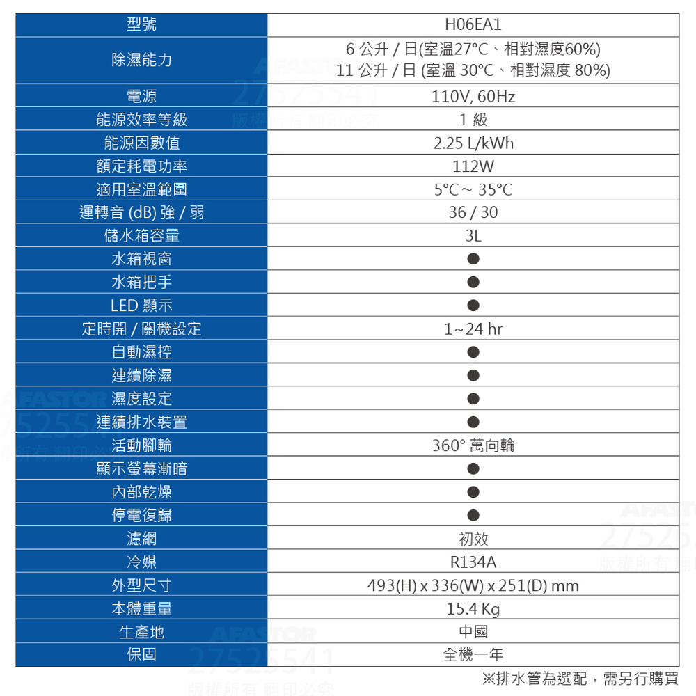 ★除濕能力: 6L/D(室溫27°C、相對濕度60%)