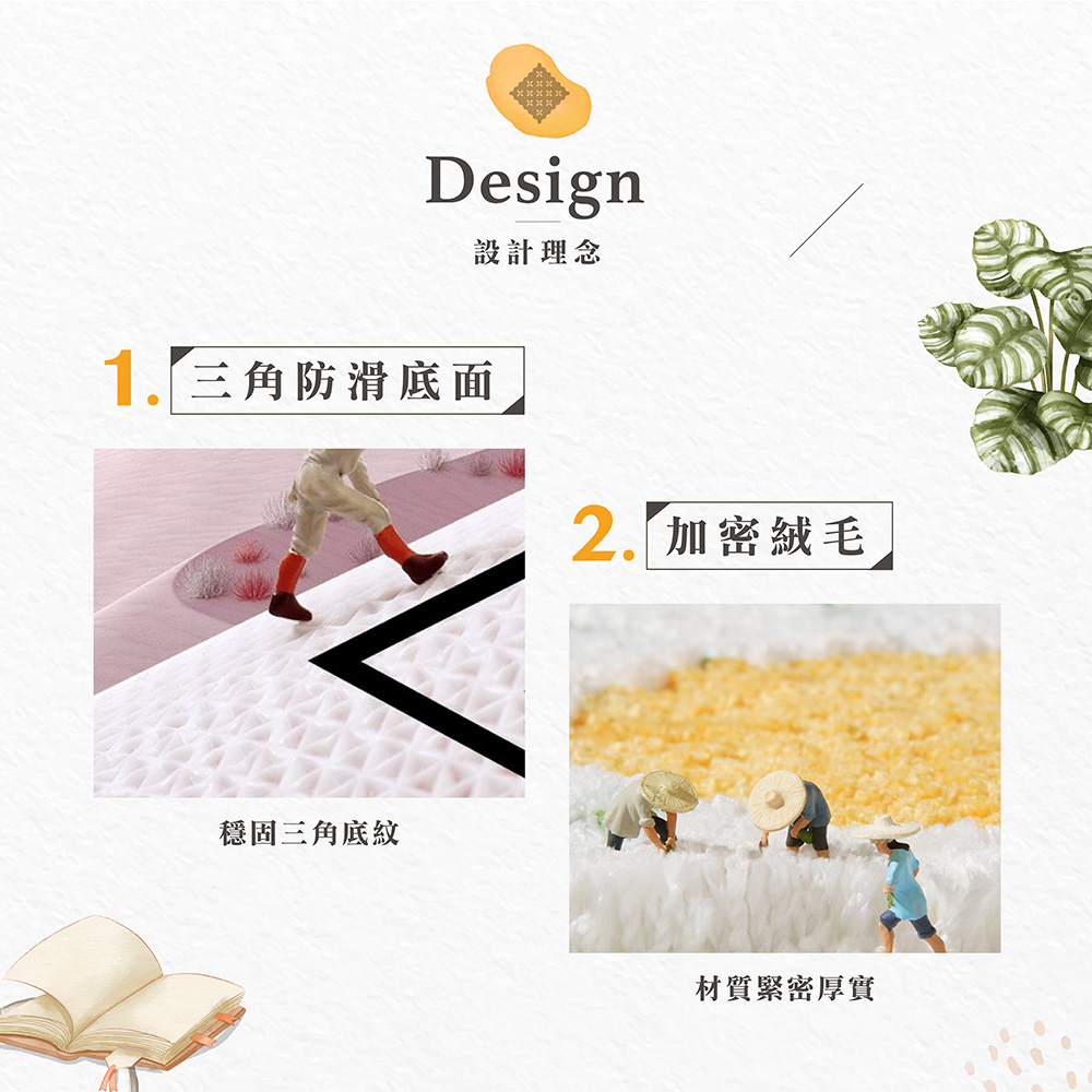 規格 尺寸:45 x 65 cm 特色 1.三角防滑底面 穩固三角底紋 2.加密絨毛 材質緊密厚實 3.可機洗 方便清潔打理
