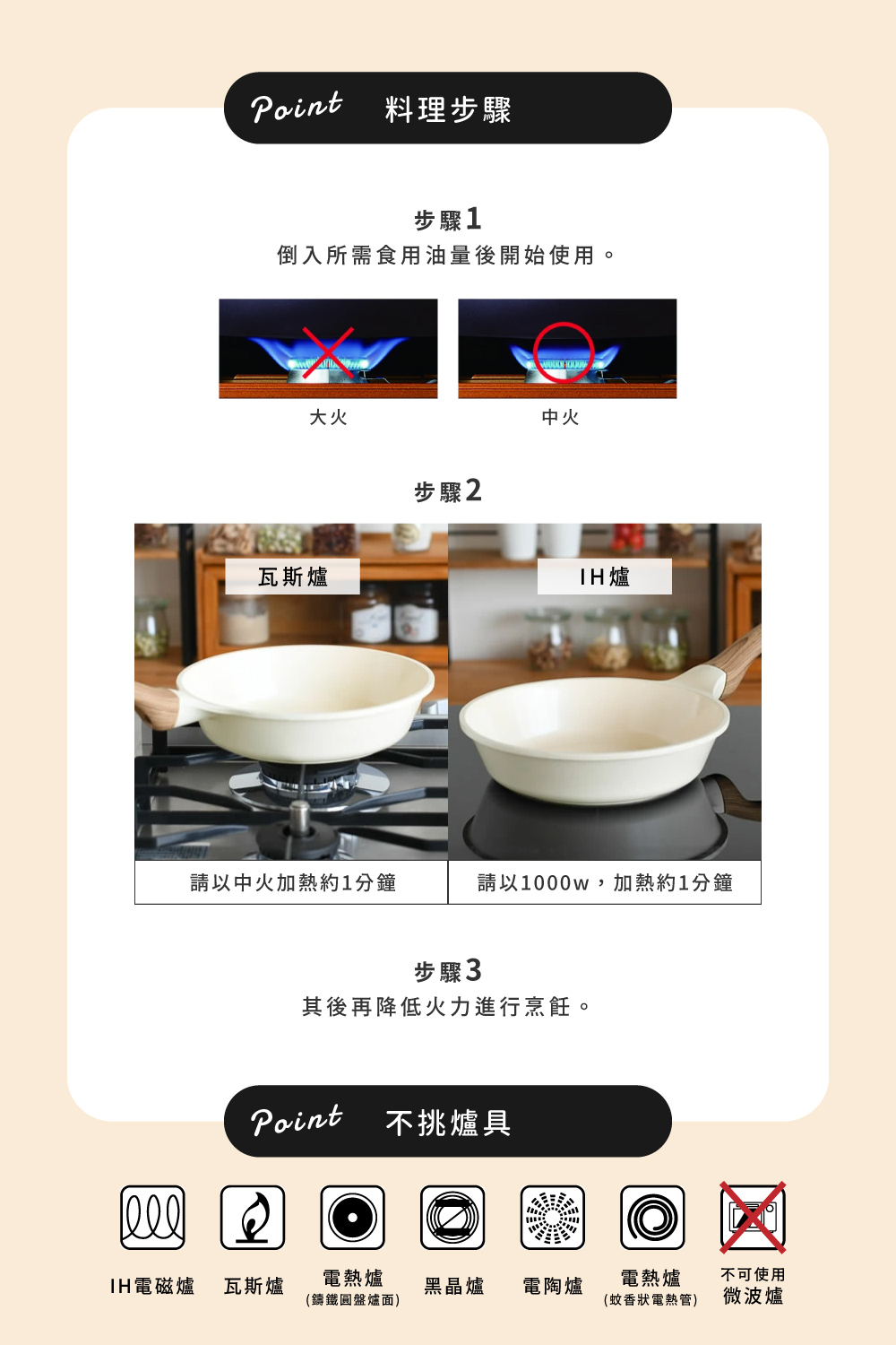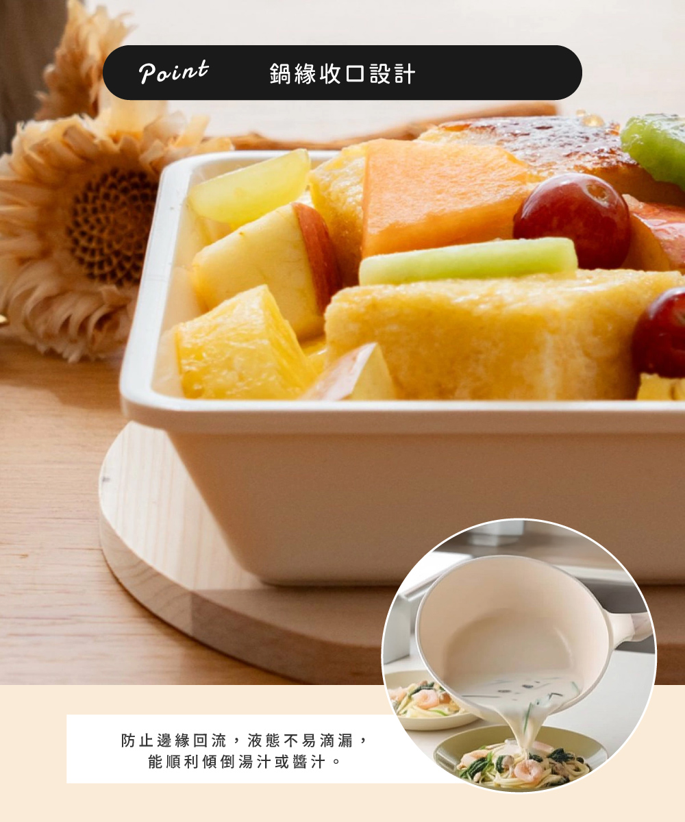 ■尺寸:寬21×全長39.5×高9.7cm、底徑14.5cm、深度4.6cm■重量:470g■材質:本體/鋁合金(內•外層:陶瓷不沾塗層加工)、鍋底外層/430不鏽鋼、把手/酚醛樹脂■耐熱溫度:把手180°C■適用於瓦斯爐、電熱爐、電陶爐、黑晶爐、電熱爐、200V IH爐■不適用於微波爐■日本企劃 越南製