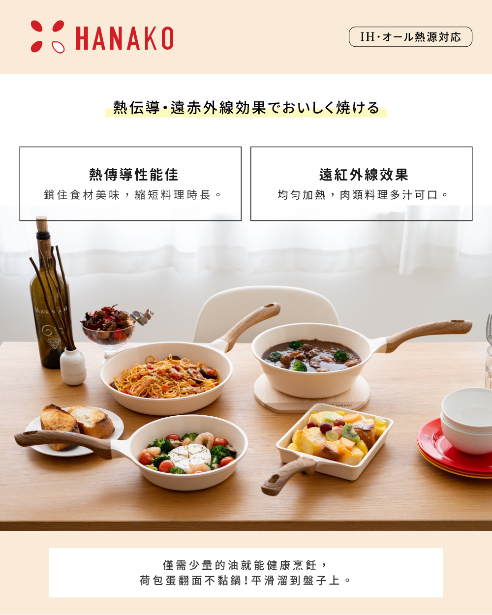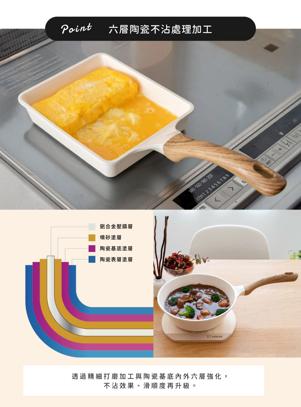 【HANAKO】Japan 6-Layer Ceramic Nonstick Tamagoyaki Pan (Compatible with IH & Gas Stoves / Fast Heating & Easy to Clean / Lightweight Design)