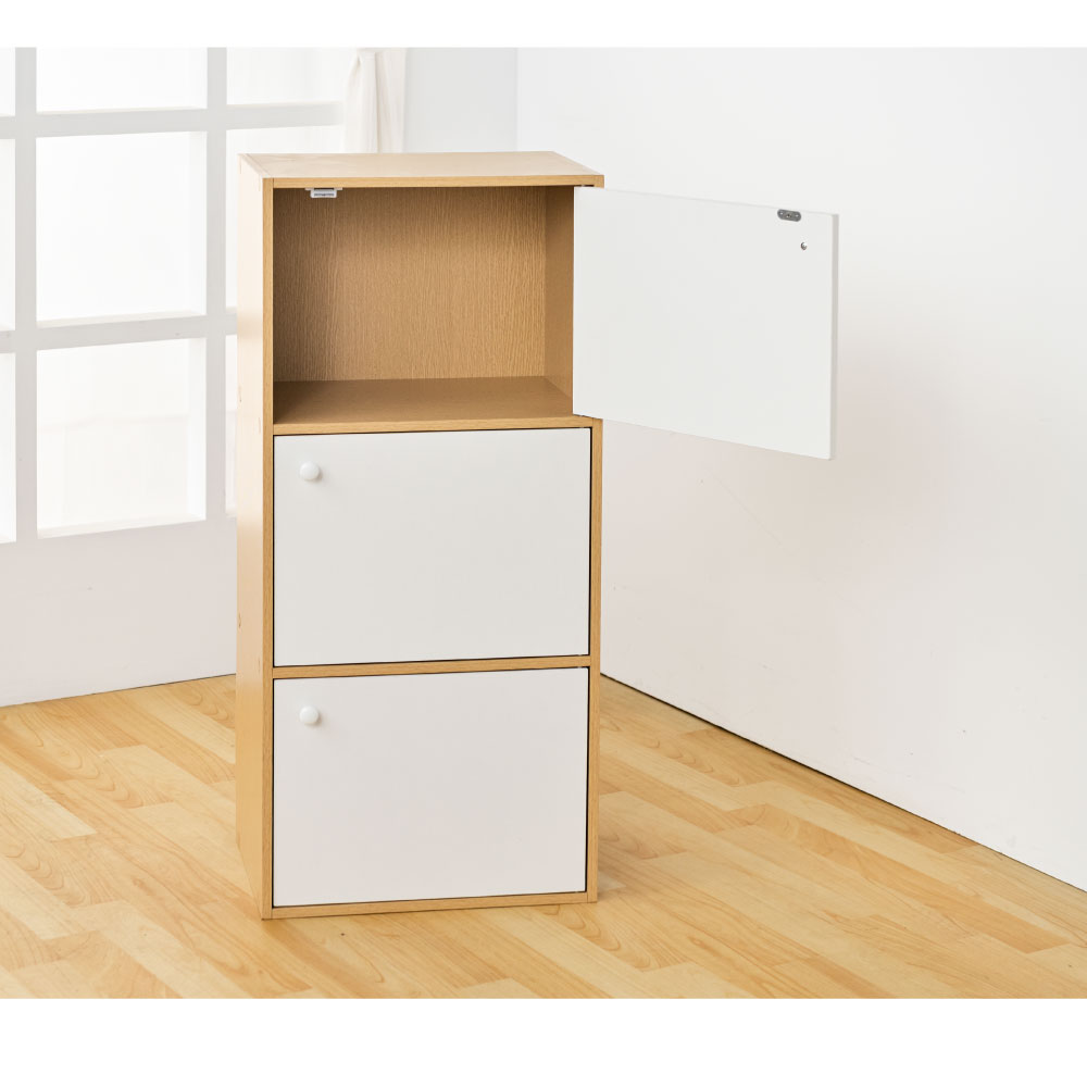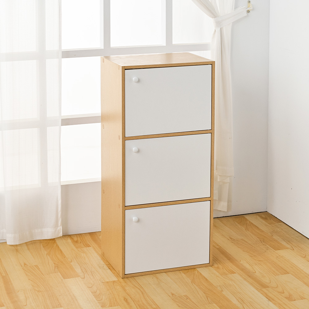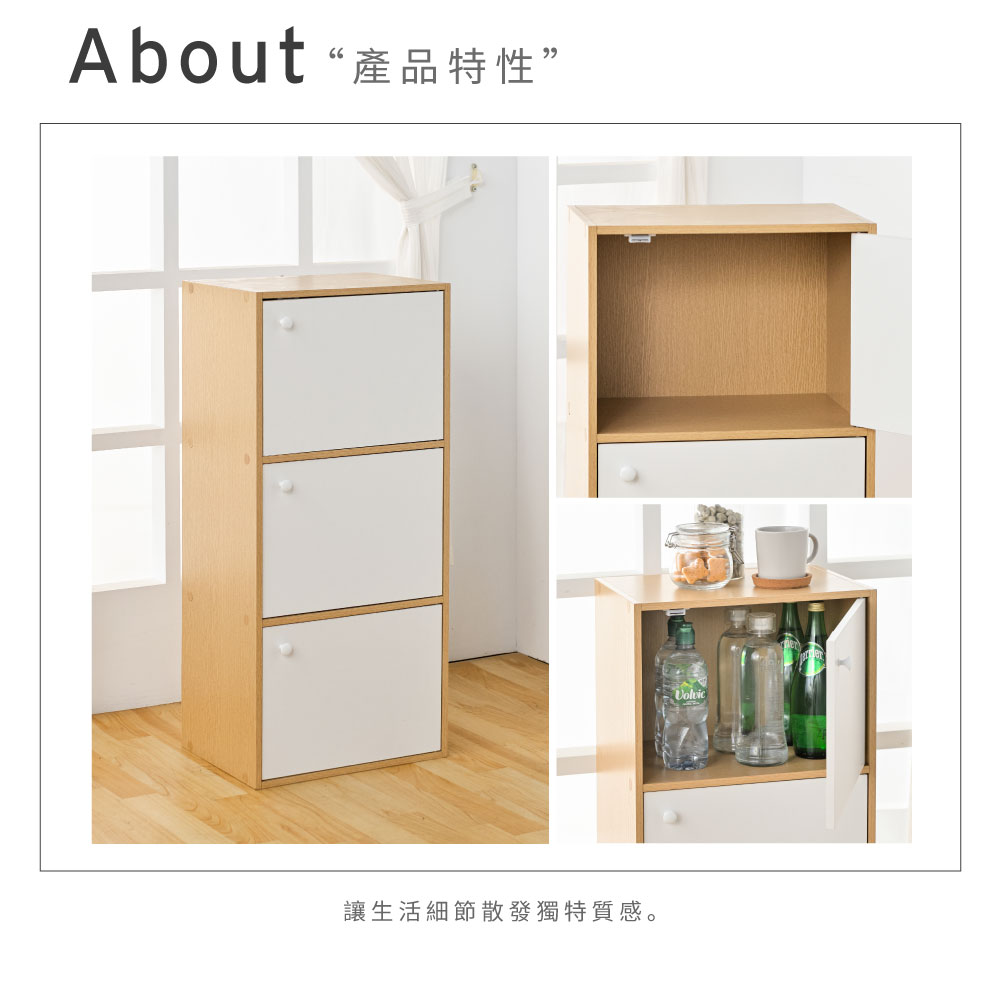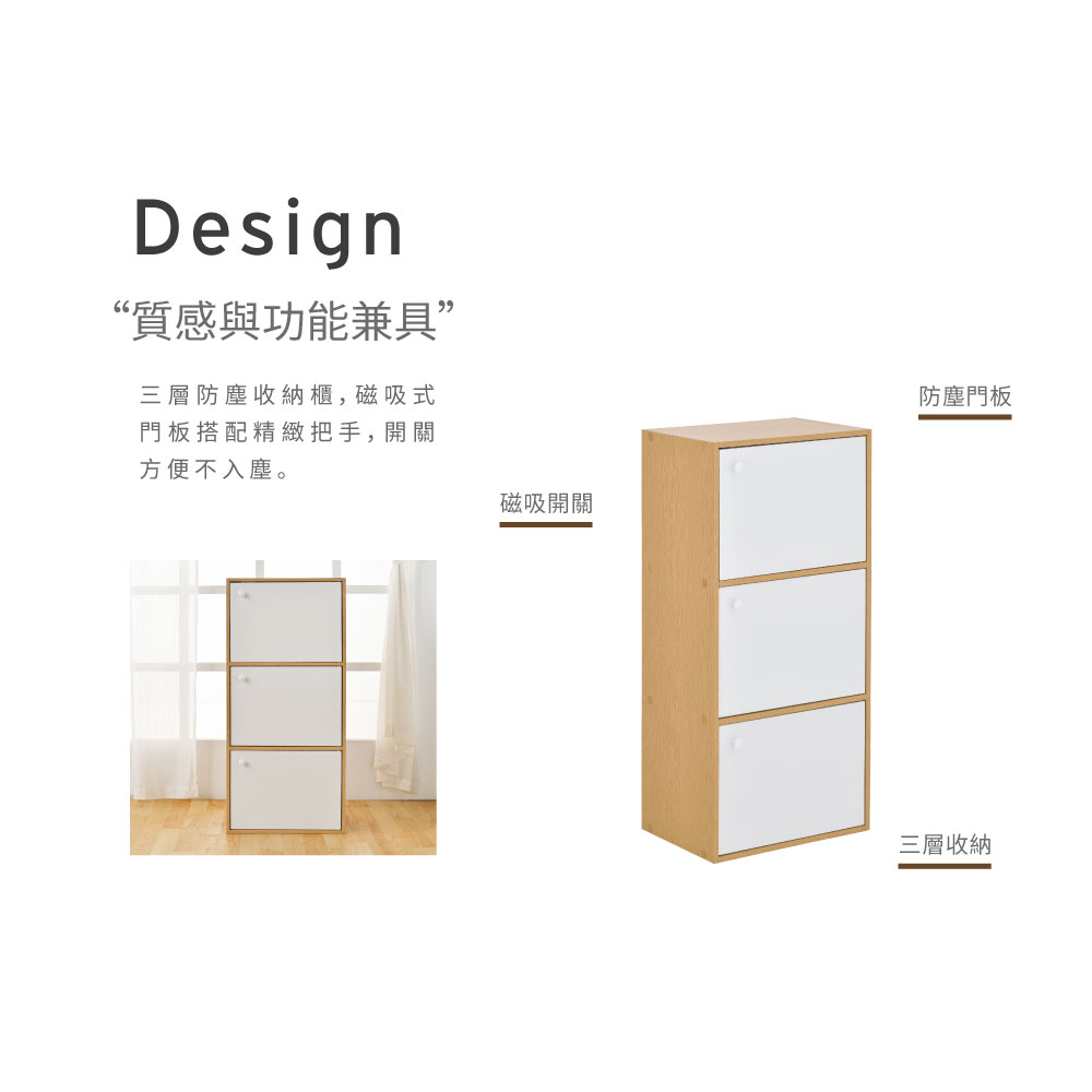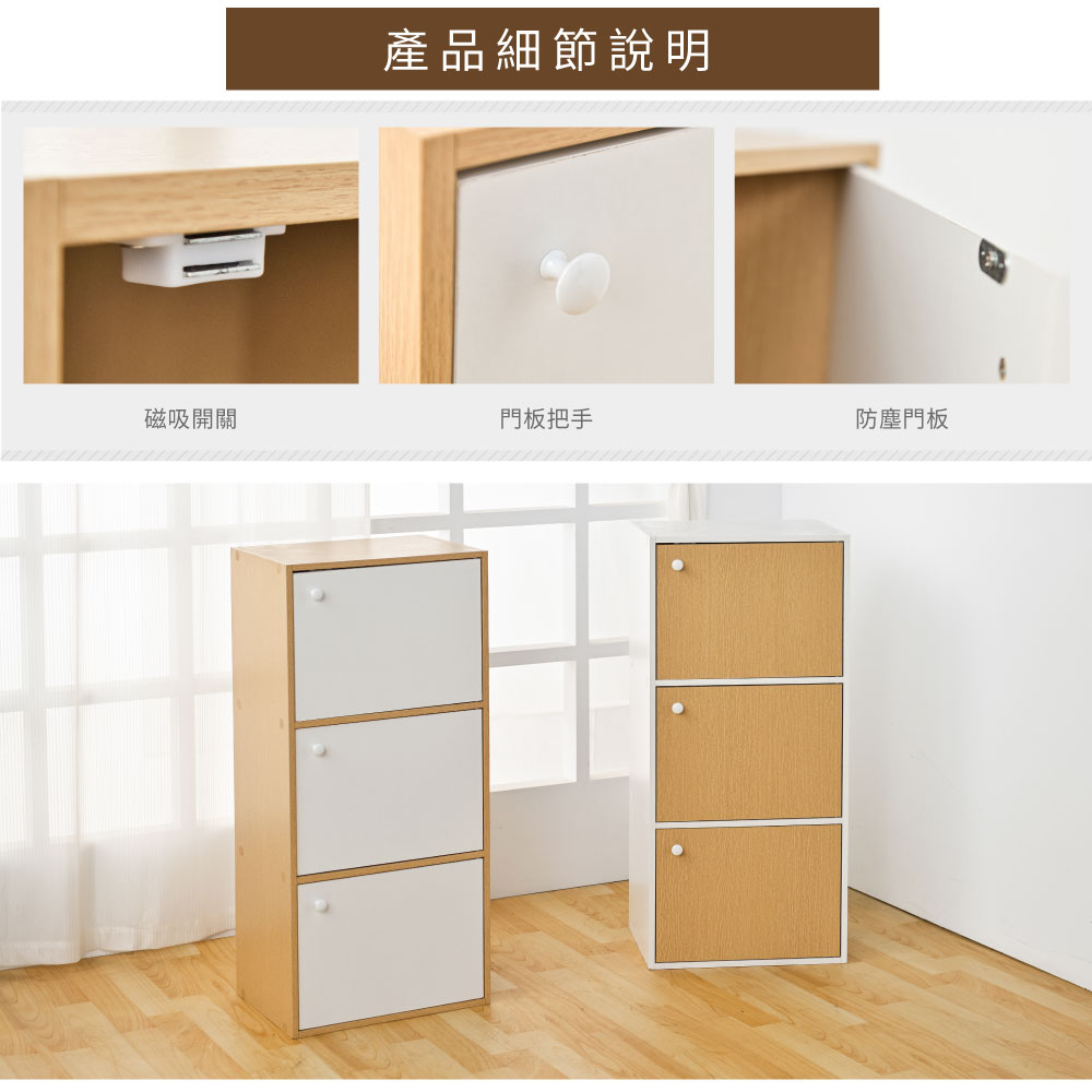 【H&R安室家】簡約木紋三門收納櫃/置物櫃-BCF32►磁吸式門板,防塵效果佳 ►可併排堆疊使用,靈活收納 ►輕鬆收藏書報雜誌、擺飾品、收藏品