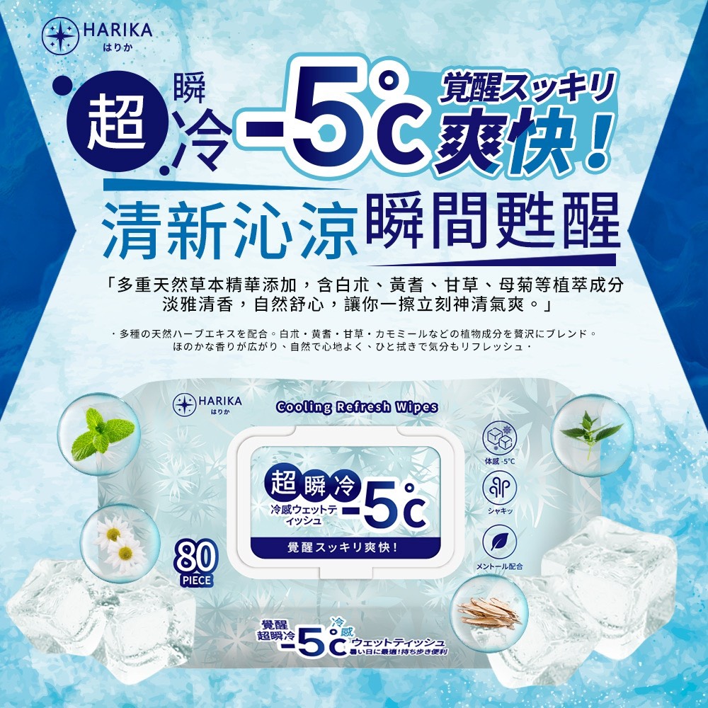 Japan 【HARIKA】Super Awakening -5°C Cooling Wet Wipes 80 Sheets × 3 Packs (Total 240 Sheets)