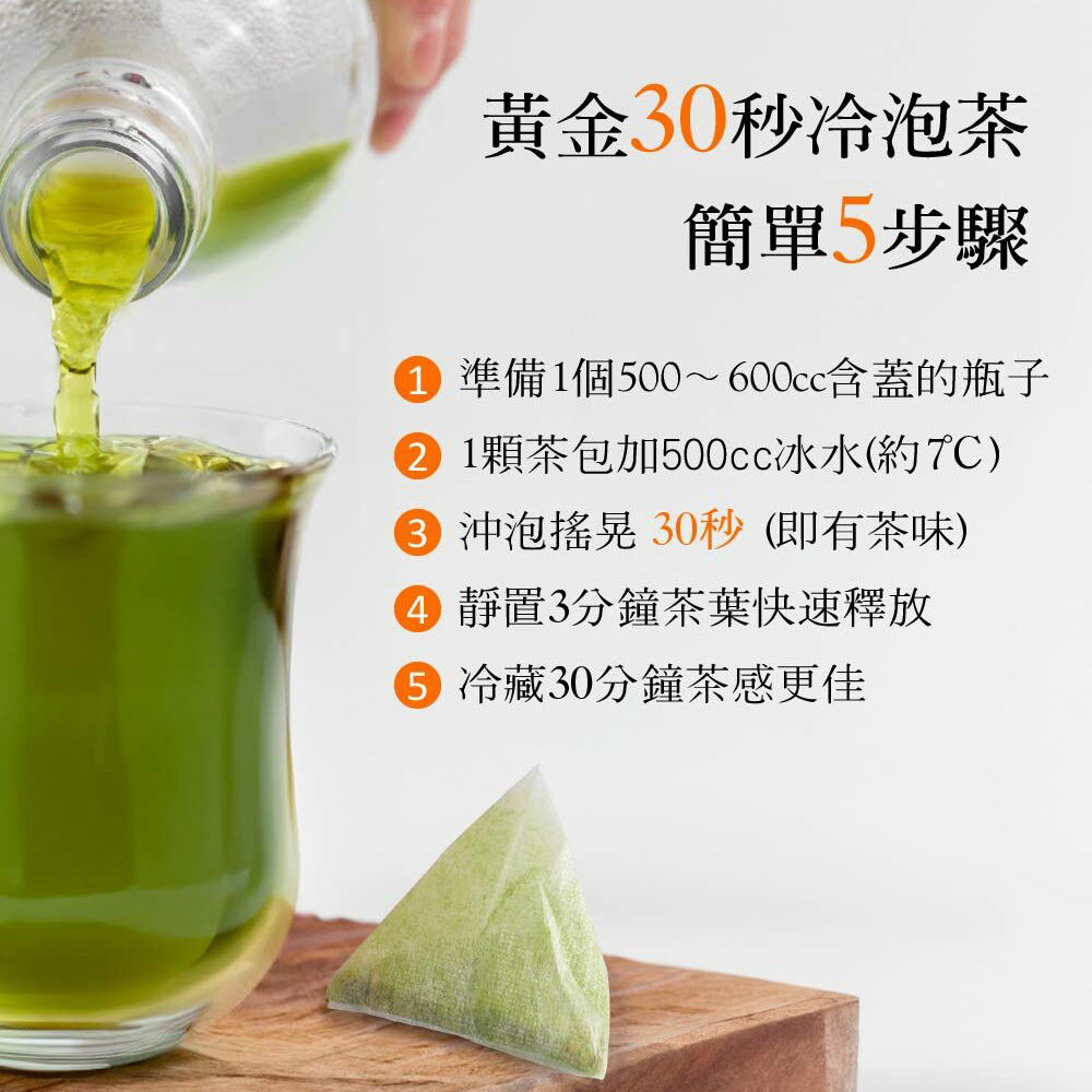 ◎以冷水沖泡搖晃30秒即有茶味,3分鐘內就能讓茶葉快速釋放完整風味