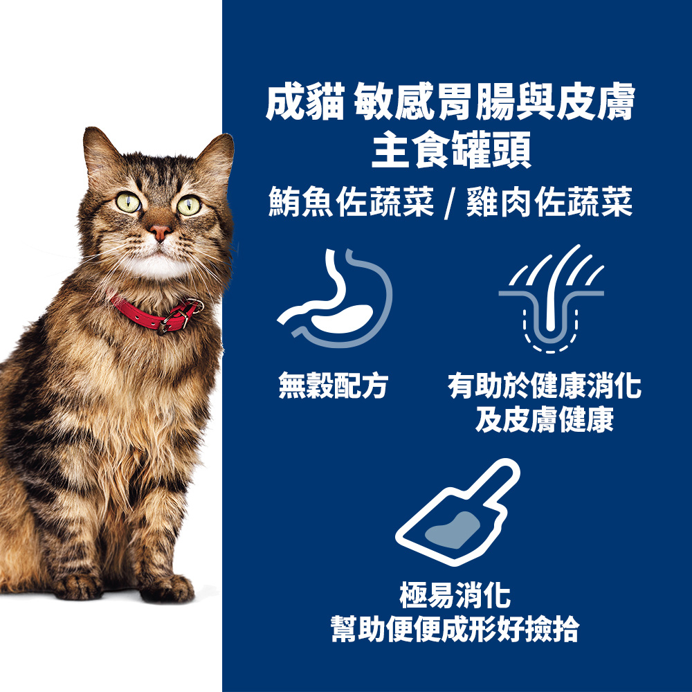 【Hills 希爾思】成貓 敏感胃腸與皮膚雞肉佐蔬菜主食罐 2.9oz 82gX6罐/盒 (10642)