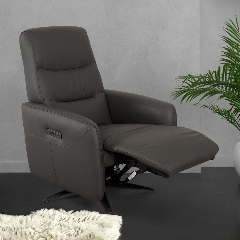 ◆實用便利旋轉式座椅設計◆優雅單人座,可隨心擺搭◆雙馬達系統,多角度調節◆一鍵自由躺,全方位釋壓◆選用頂級高質感牛皮材質◆獨立筒彈簧坐墊,彈性佳◆流行百搭的經典大地色系◆實用二種充電式插座裝置◆免組裝,由專人配送到府尺寸:寬 75 x 深 92 x 高 104 公分材質:牛皮+PVC顏色:深灰色產地:中國誤差值:因人工丈量,尺寸±5%內為正常範圍