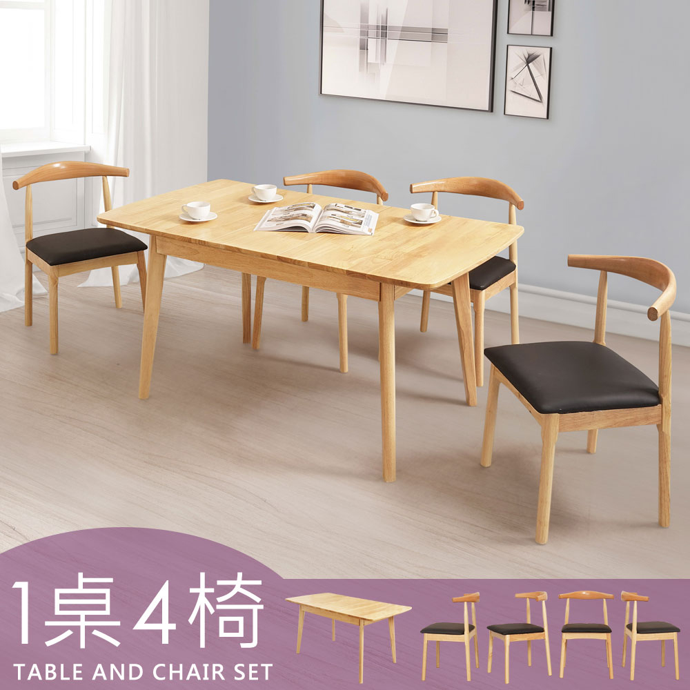 ◆可伸縮延長,機能性佳◆實木材質結構,穩固耐用◆北歐風格餐桌,美型好搭◆免自行組裝,專人配送到府整體配件:餐桌 x 1 + 餐椅 x 4桌子尺寸:寬 120~150 x 深 80 x 高 75 公分椅子尺寸:寬 54 x 深 49 x 高 78 公分桌子材質:橡膠木椅子材質:橡膠木、PU皮面顏色:原木色產地:中國誤差值:因人工丈量,尺寸±5%內為正常範圍
