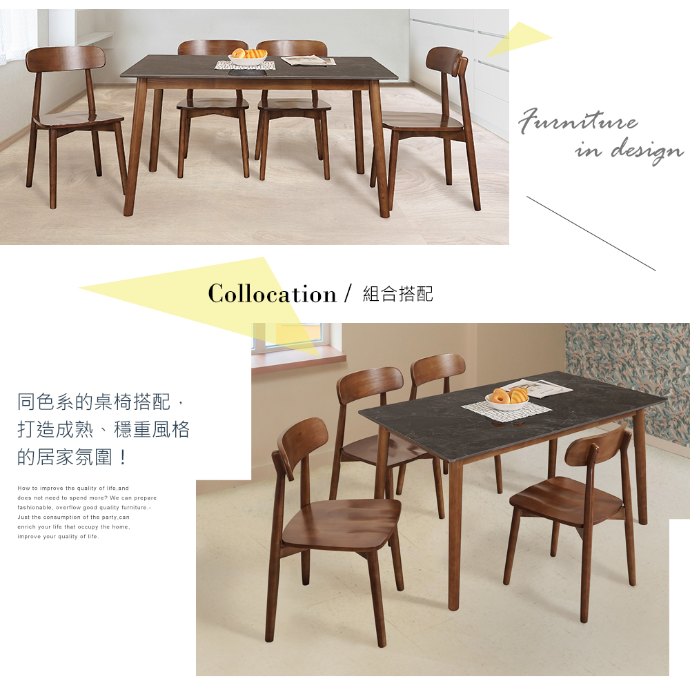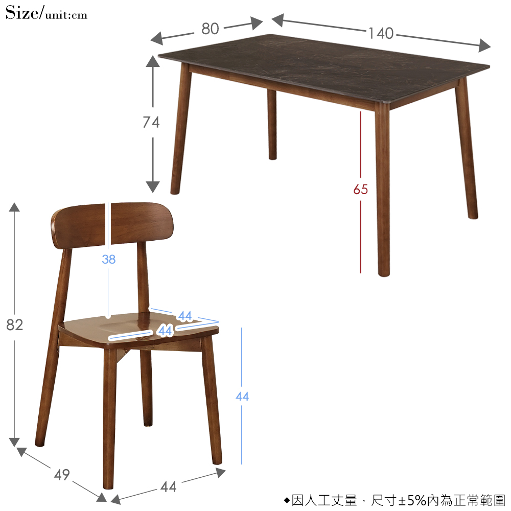 ◆岩板耐刮、耐高溫、好清潔◆實木材質結構,穩固耐用◆北歐風格設計,美型好搭◆一桌四椅,一次購齊◆免自行組裝,專人配送到府整體配件:餐桌 x 1 + 餐椅 x 4桌子尺寸:寬 140 x 深 80 x 高 74 公分椅子尺寸:寬 44 x 深 49 x 高 82 公分桌子材質:橡膠木、岩板椅子材質:橡膠木顏色:胡桃色產地:中國誤差值:因人工丈量,尺寸±5%內為正常範圍