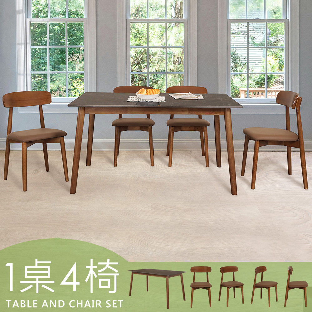◆岩板耐刮、耐高溫、好清潔◆實木材質結構,穩固耐用◆北歐風格設計,美型好搭◆一桌四椅,一次購齊◆免自行組裝,專人配送到府整體配件:餐桌 x 1 + 餐椅 x 4桌子尺寸:寬 140 x 深 80 x 高 74 公分椅子尺寸:寬 45 x 深 49 x 高 81 公分桌子材質:橡膠木、岩板椅子材質:橡膠木、貓抓皮顏色:胡桃色產地:中國誤差值:因人工丈量,尺寸±5%內為正常範圍