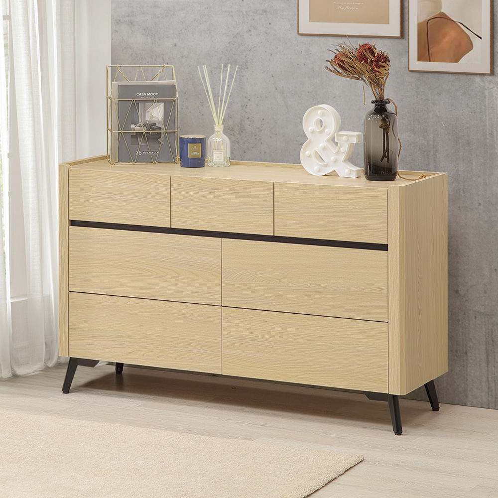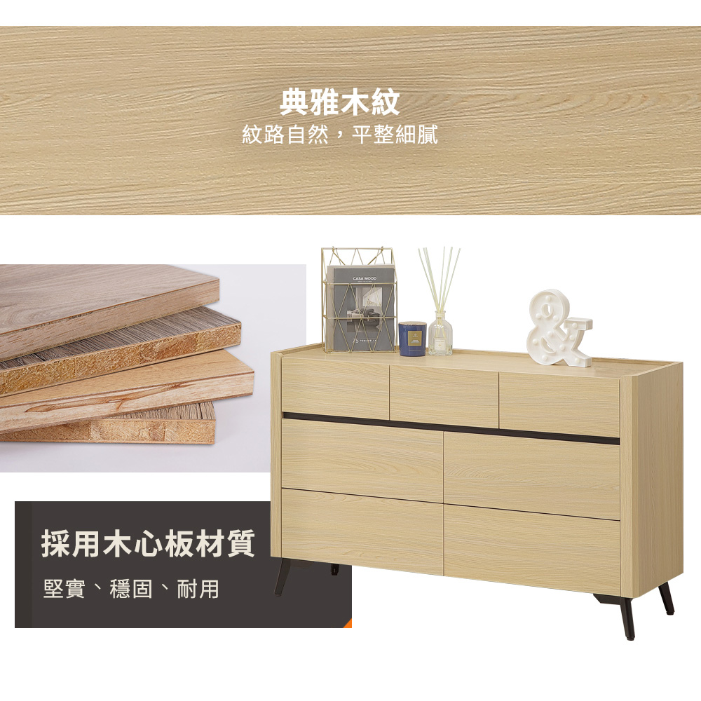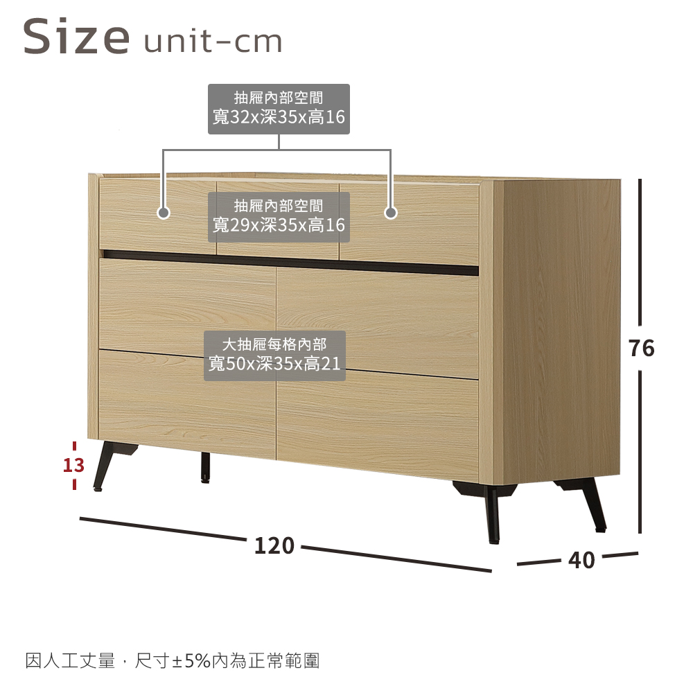 ◆木心板材質,堅實、穩固、耐用◆櫃緣淺槽設計預防物品滾落◆七抽大容量,收納更自由◆幾何設計挑高腳架,清掃方便◆免組裝,專人配送到府尺寸:寬 120 x 深 40 x 高 76 公分材質:高級木心板顏色:杉木色產地:台灣誤差值:因人工丈量,尺寸±5%內為正常範圍