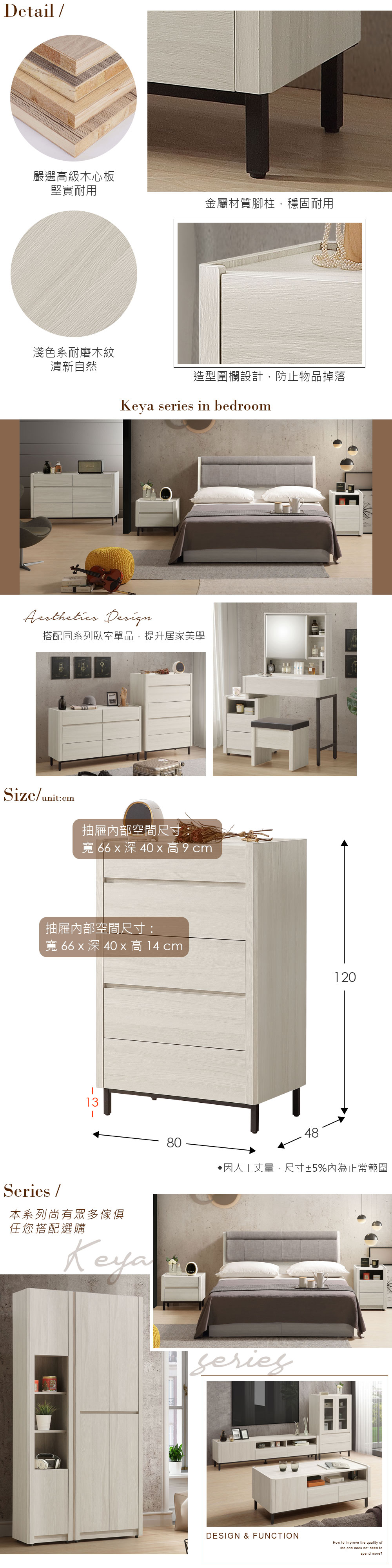 ◆木心板材質,堅實、穩固、耐用◆清新淺色系,質感木紋路視覺◆木質+金屬異材質結合,北歐、輕工業風◆檯面做凹槽圍欄設計,防止物品掉落◆五抽屜收納設計,分類置物好整齊◆金屬鐵腳結構支撐,穩固、耐用◆免組裝,專人配送到府尺寸:寬 80 x 深 48 x 高 120 公分材質:高級木心板、鐵腳顏色:白榆木色產地:台灣誤差值:因人工丈量,尺寸±5%內為正常範圍