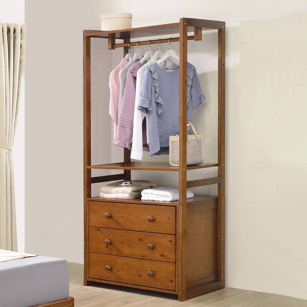◆開放設計,降低壓迫感◆實木材質,品質佳◆下方三抽屜,收納小物◆專人配送,到府組裝◆典雅鄉村風格◆可放臥室、服飾店尺寸:寬 81 x 深 55 x 高 185 公分材質:實木顏色:胡桃色產地:越南誤差值:因人工丈量,尺寸±5%內為正常範圍