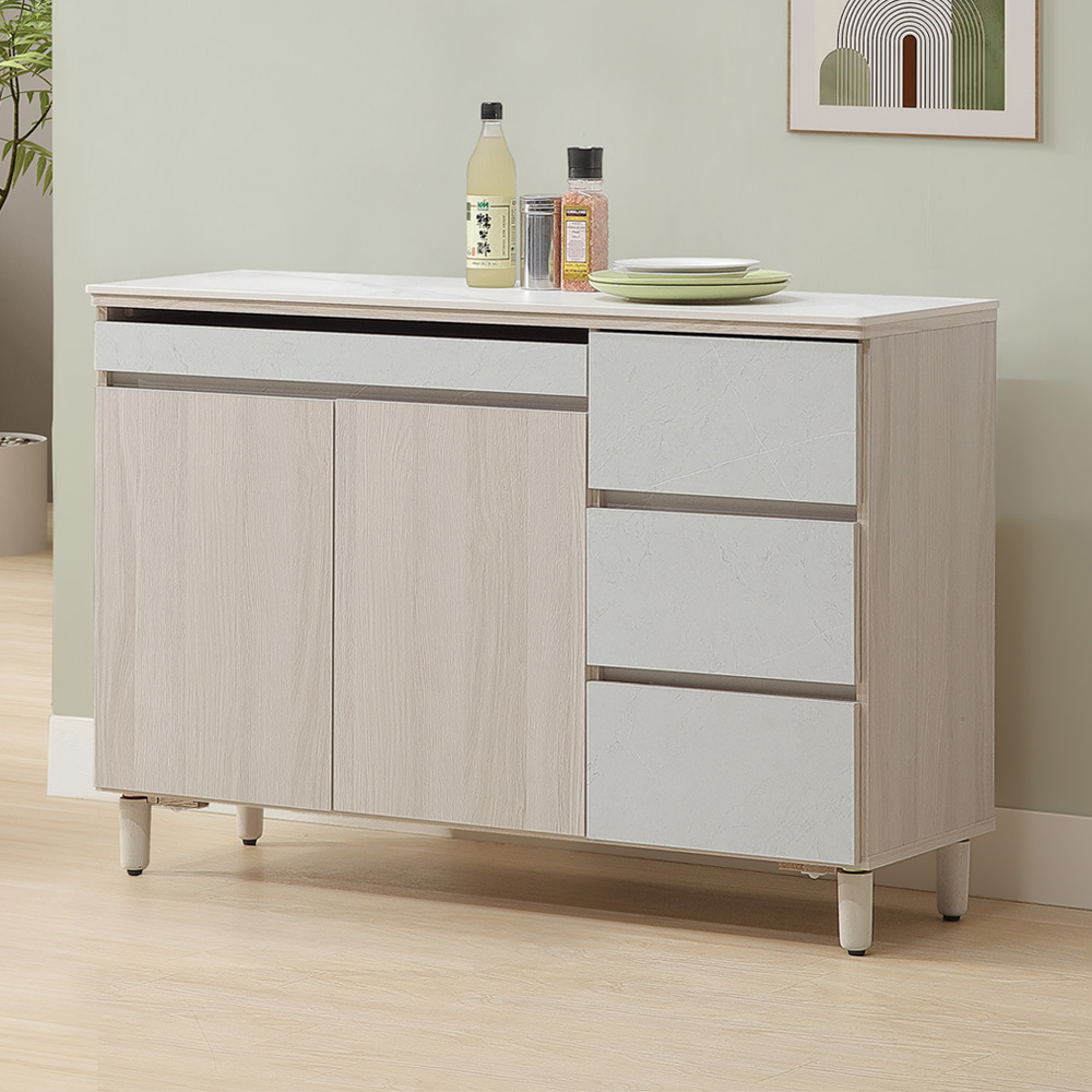 ◆活動拉盤提升收納機能◆三抽屜+門櫃置物空間◆挑高腳,隔離地面濕氣◆岩板檯面,耐高溫耐刮◆抽屜採用鋼珠滑軌設計◆緩衝門板,可減少噪音◆質感美耐皿仿石岩紋路◆美背處理,正反都美麗◆極簡主義,現代簡約風◆白榆木,清新淡雅色調◆免組裝,專人配送到府尺寸:寬 120 x 深 40 x 高 84 公分材質:高級木心板、美耐皿、岩板顏色:白榆木雙色產地:台灣誤差值:因人工丈量,尺寸±5%內為正常範圍