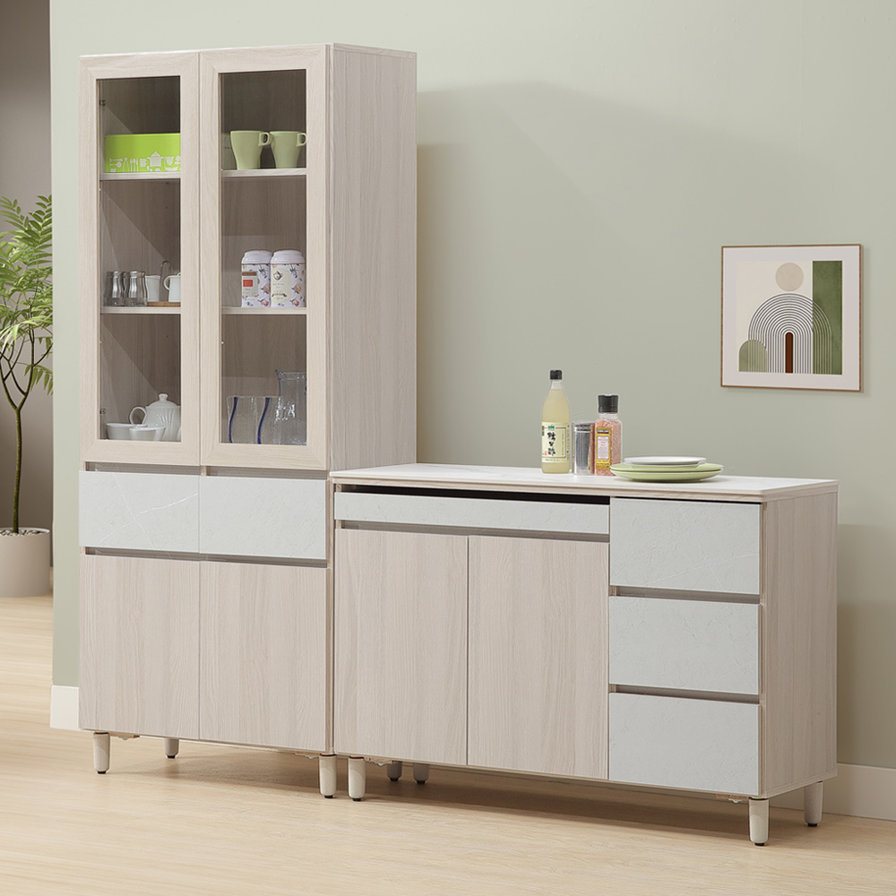 ◆實用多元收納餐廚組合◆活動拉盤提升收納機能◆精緻玻璃門質感再升級◆挑高腳,隔離地面濕氣◆岩板檯面,耐高溫耐刮◆抽屜採用鋼珠滑軌設計◆緩衝門板,可減少噪音◆質感美耐皿仿石岩紋路◆美背處理,正反都美麗◆極簡主義,現代簡約風◆白榆木,清新淡雅色調◆免組裝,專人配送到府整組配件:中抽櫃+4尺岩板餐櫃中抽櫃尺寸:寬 81 x 深 40 x 高 190 公分餐櫃尺寸:寬 120 x 深 40 x 高 84 公分材質:高級木心板、美耐皿、岩板顏色:白榆木雙色產地:台灣誤差值:因人工丈量,尺寸±5%內為正常範圍