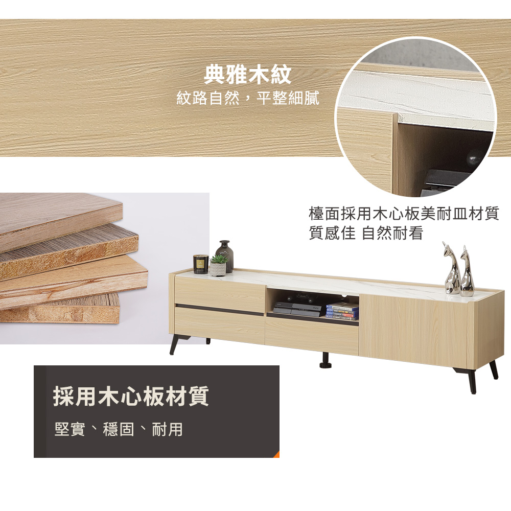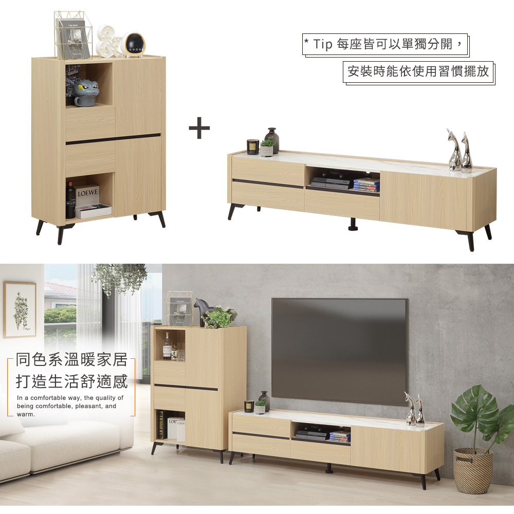 ◆木心板材質,堅實、穩固、耐用◆仿石紋質感檯面◆櫃緣淺槽設計預防物品滾落◆兼具收納與展示滿足不同收納需求◆穩固鐵腳,腳粒可微調水平◆抽屜鋼珠滑軌,收拉更順暢◆電視櫃排線孔隱藏凌亂,走線方便◆免組裝,專人配送到府整體搭配:電視櫃 x 1 + 置物櫃 x 1置物櫃尺寸:寬80 x 深40 x 高120 公分電視櫃尺寸:寬 180 x 深 40 x 高 46 公分材質:高級木心板、美耐皿顏色:杉木色產地:台灣誤差值:因人工丈量,尺寸±5%內為正常範圍
