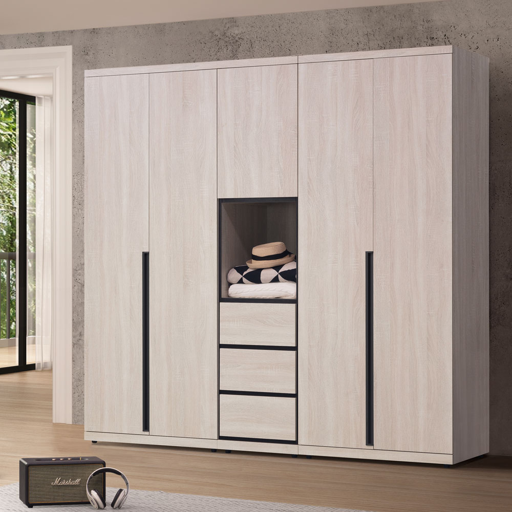 ◆清新自然的雪松色木紋◆大容量的三吊衣空間◆四抽屜+開放格收納設計◆免組裝專人配送到府◆輕工業、北歐自然+金屬風格◆更衣室、臥室置物巧妙的提升◆三吊桿+四抽屜收納尺寸:寬 205 x 深 57 x 高 202 公分材質:高級木心板顏色:白雪松產地:台灣誤差值:因人工丈量,尺寸±5%內為正常範圍