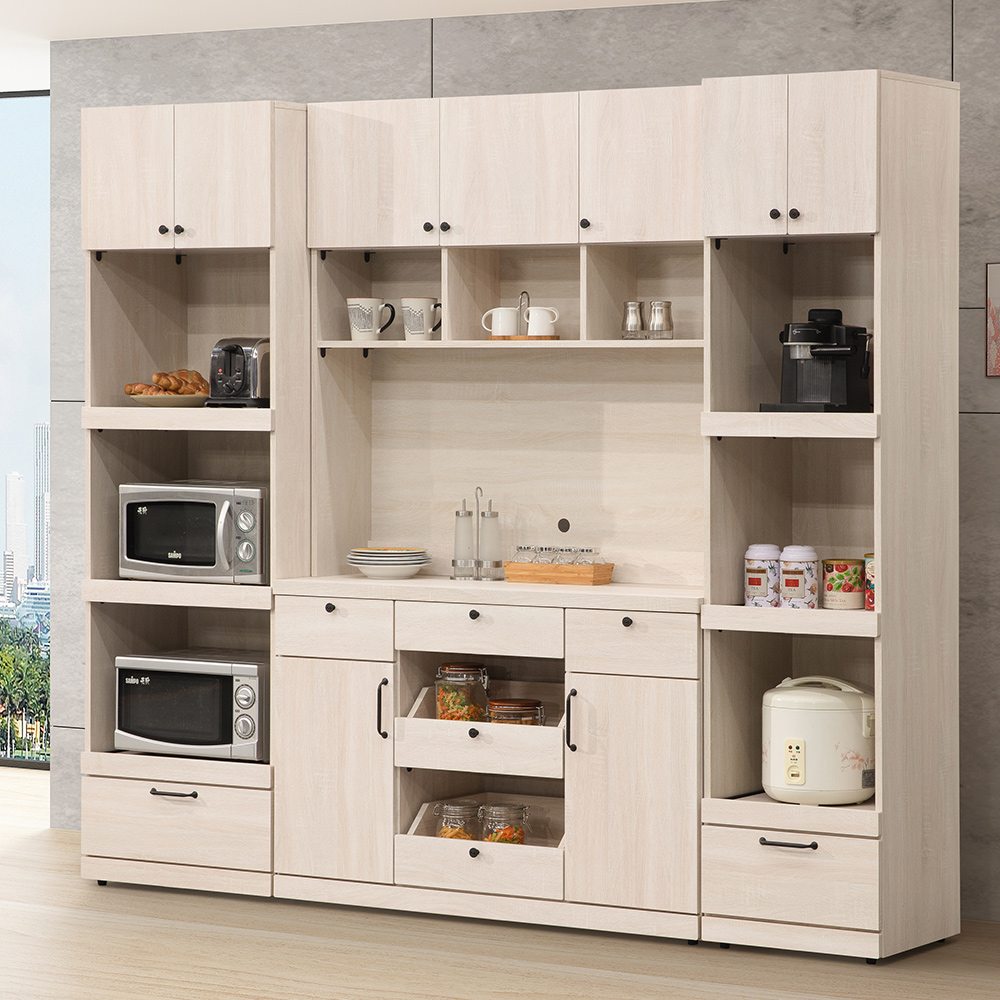 ◆雪松清新風格,簡約美觀◆三件組合,可以需求更換位置◆半開放收納盤,餐具一目了然◆免自行組裝,專人配送到府◆廚房、餐廳收納好幫手◆可當餐櫃、高櫃、電器收納櫃、廚櫃◆六拉盤+七抽屜收納尺寸:寬 226 x 深 40 x 高 201 公分材質:高級木心板顏色:雪松色產地:台灣誤差值:因人工丈量,尺寸±5%內為正常範圍