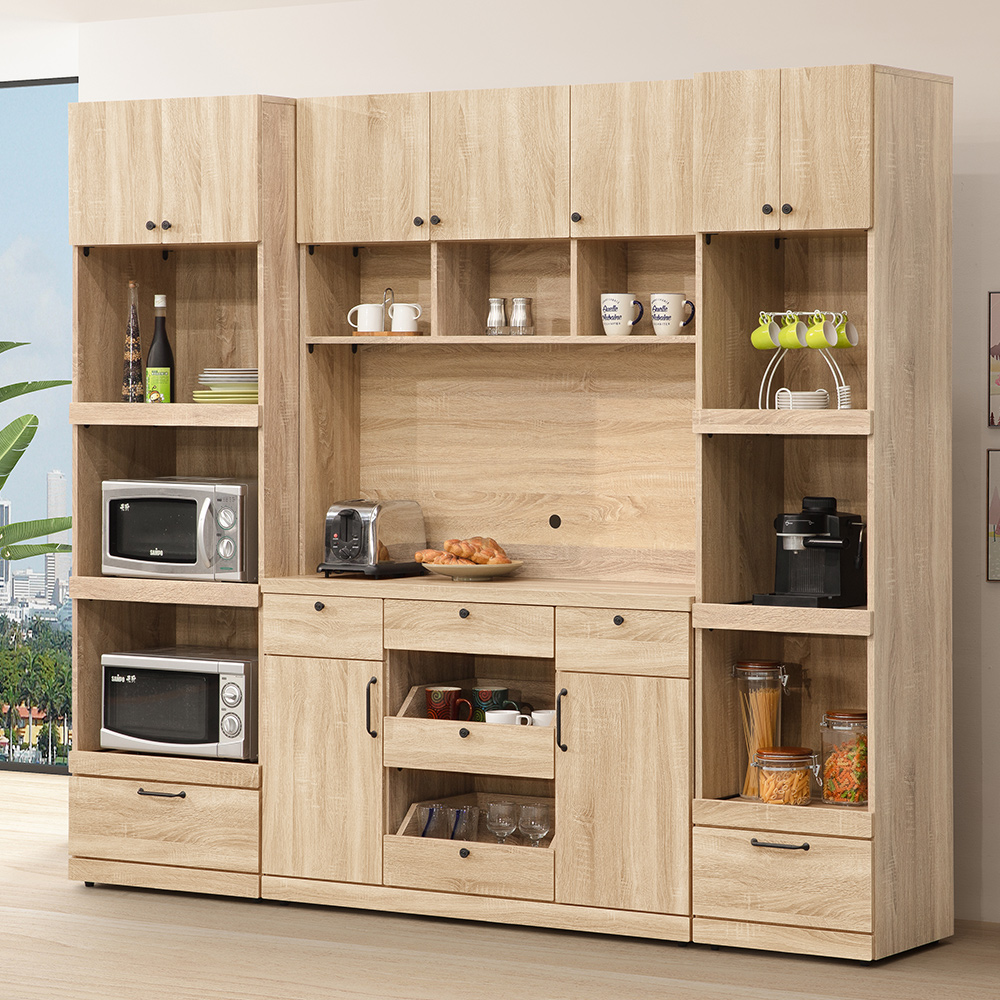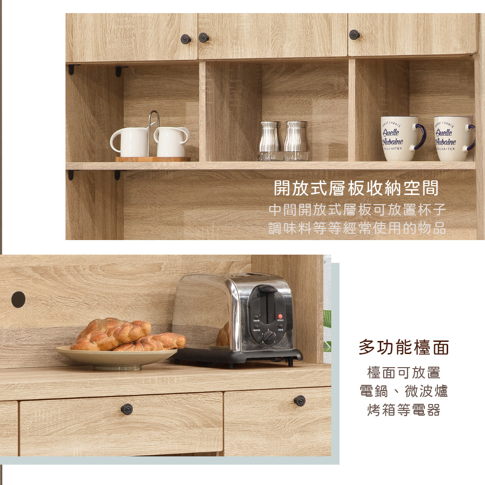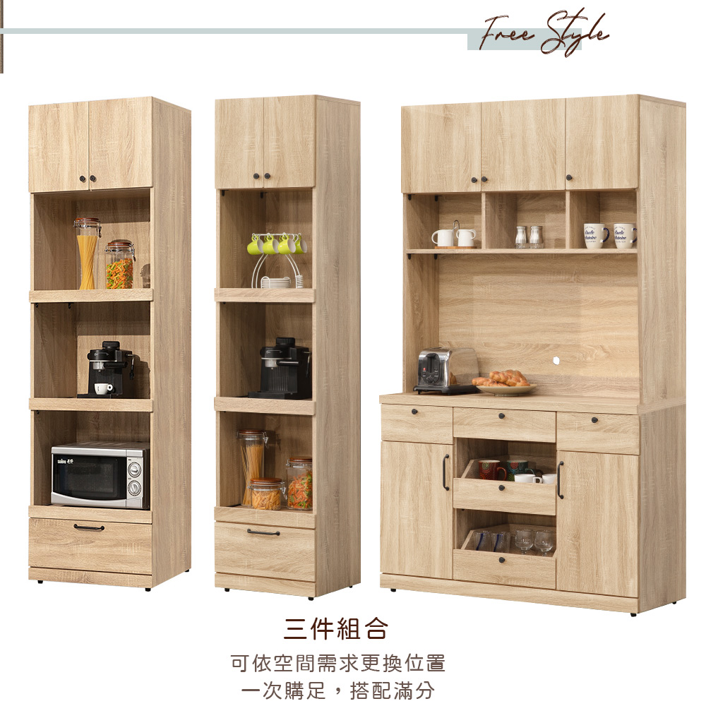 ◆梧桐自然風格,簡約美觀◆三件組合,可以需求更換位置◆半開放收納盤,餐具一目了然◆免自行組裝,專人配送到府◆日式風格◆廚房、餐廳收納好幫手◆可當餐櫃、高櫃、電器收納櫃、廚櫃◆六拉盤+七抽屜收納尺寸:寬 226 x 深 40 x 高 201 公分材質:高級木心板顏色:梧桐色產地:台灣誤差值:因人工丈量,尺寸±5%內為正常範圍